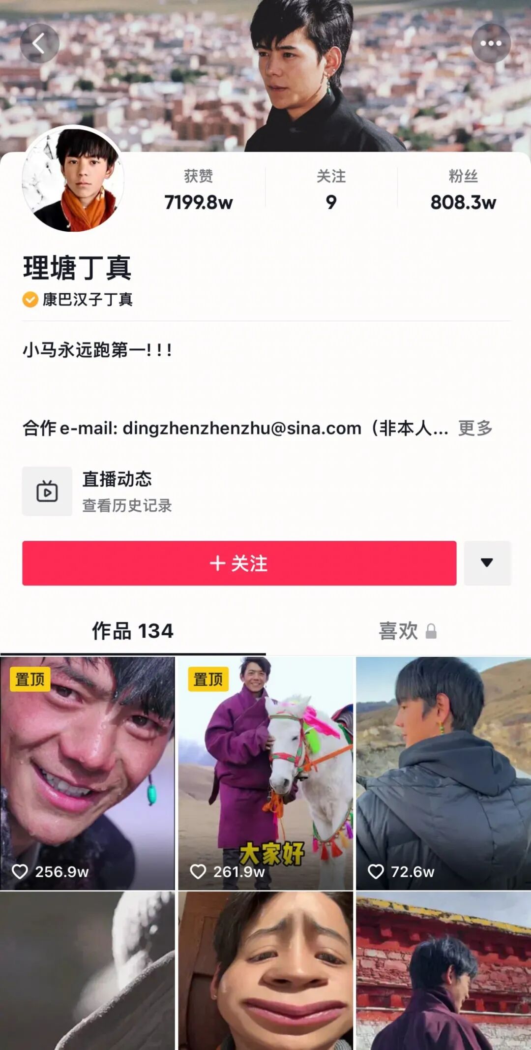 但陪伴丁真一年的团队试图表达,丁真不是网红,而是已经转型成明星,或者是本地文化的代言人。1年前签下丁真的理塘县国资集团公司董事长张玺对南风窗记者透露,这几个月团队有意减少他抖音直播的频率,“逐步脱掉网红外衣,变成一个IP”。