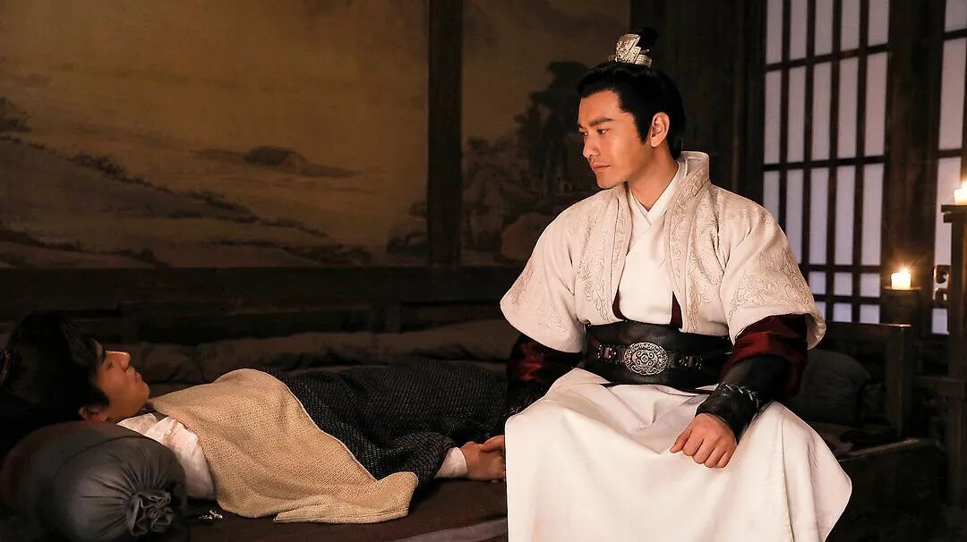 故事开始时有一段戏,是萧平章负伤之后,在府上养病。系着披风,唇色苍白,眺望远方,服装、置景都与梅长苏如出一辙。