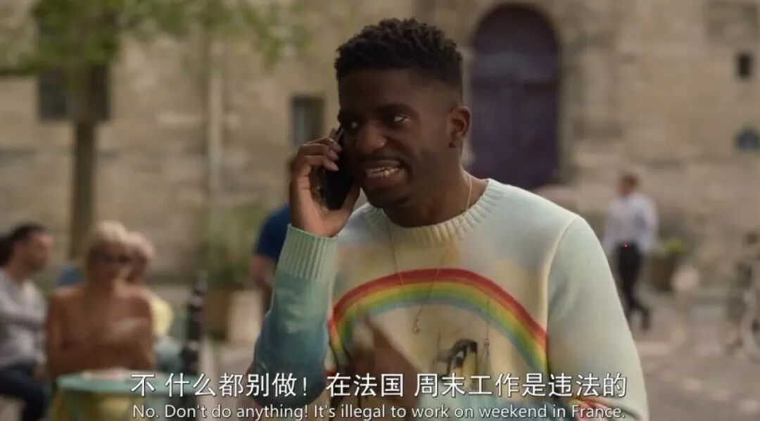 仅仅是出门买个面包,艾米丽也会因为“pain au chocolat”(巧克力面包)的阴阳性表述错误,被店老板说教一番。在工作中,她又因不懂法国人的社交礼仪和习惯,频频被上司和同事挖苦。