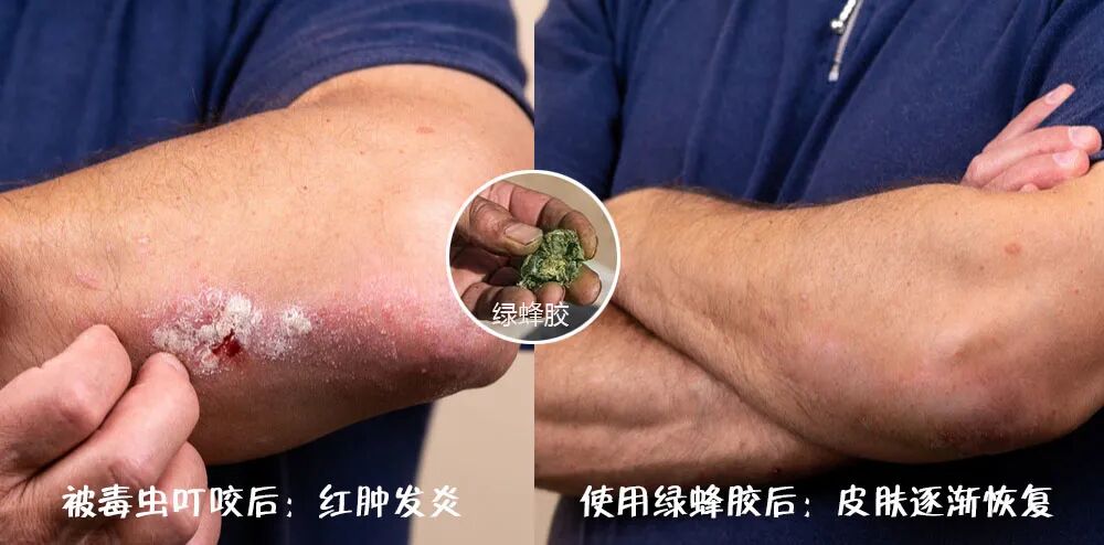 当地土著人被毒虫咬伤、皮肤真菌感染、湿疹时,只要在皮肤上抹点巴西绿蜂胶,很快就能康复!
