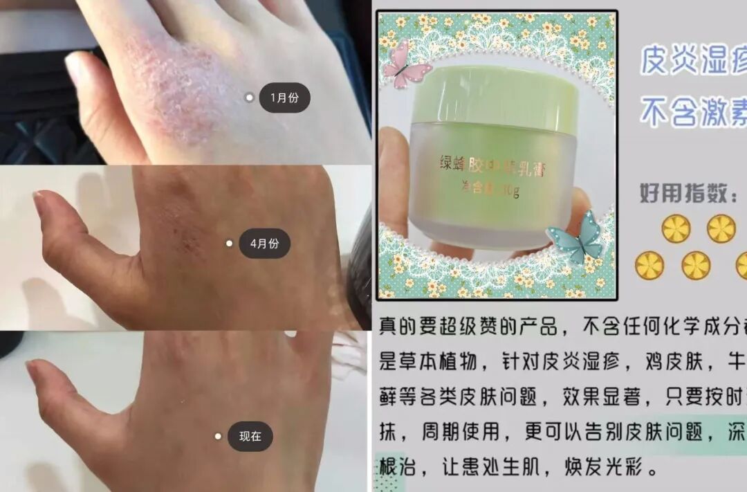 而这款绿蜂胶软膏,采用的是纯天然植物成分,不会对皮肤造成伤害,从根源消除病菌,消除皮炎湿疹;