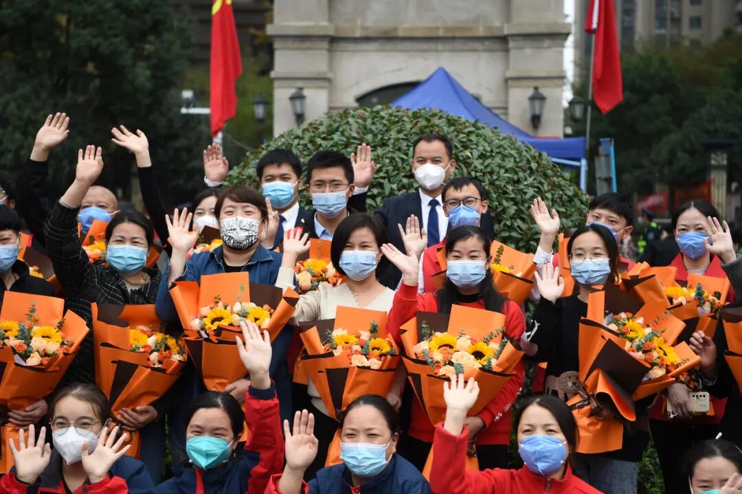 自小区管控以来,志愿者、医护人员、小区物业等一线人员坚守岗位,连续奋战,终于迎来了小区解封时刻,小区物业公司及居民代表为感谢工作人员连日来的辛苦,于解封之后向工作人员献花致敬。