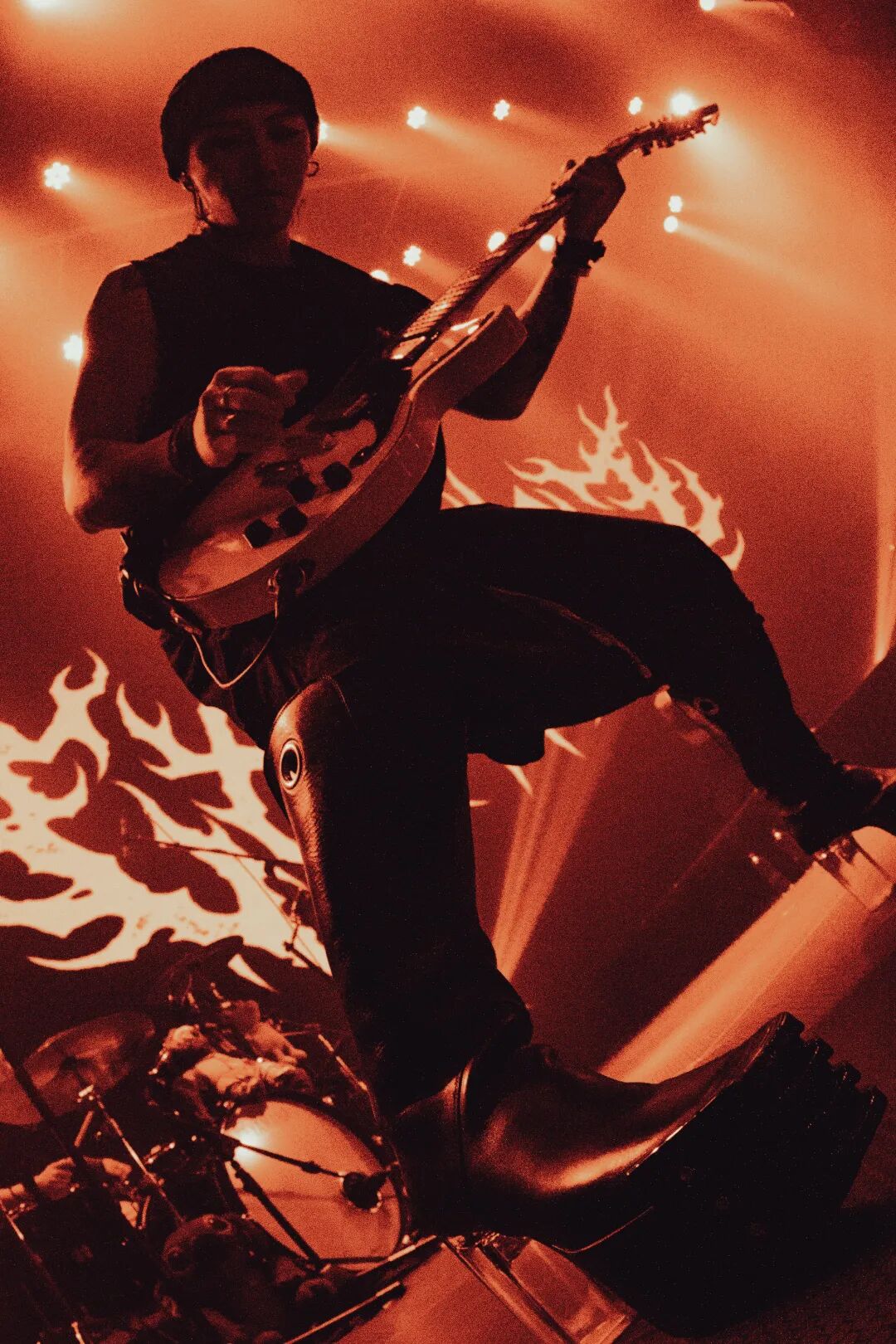 米时可和陈圣仑交替演唱,直抵心灵的穿透力让每个音符都跳动起来,层层递进的渗入每个乐迷的耳间。打扰一下乐团歌声里的爆发感,笃定而又强烈,歌曲中巨大能量被逐一放大,生的希望被一次次点燃。