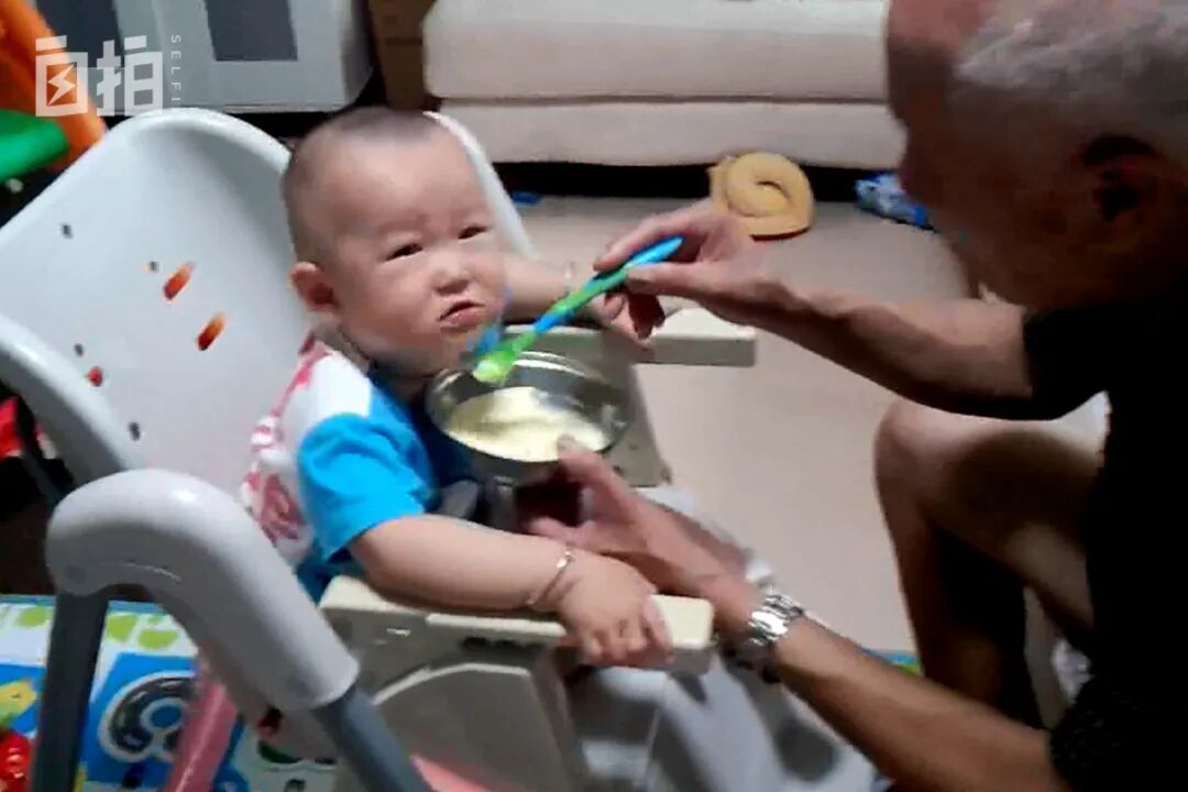 2013年,我们搬到清缘东里,父亲在喂孩子吃饭。