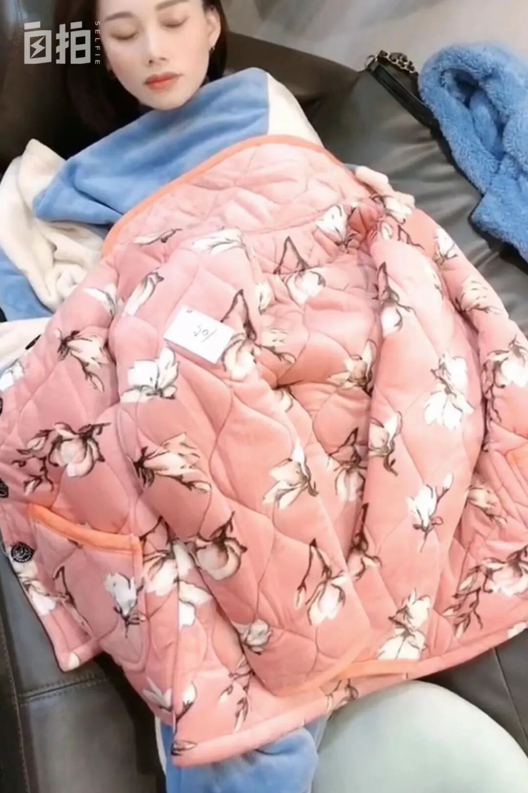 在工厂加班累到睡着了,身上披着家居服保暖。