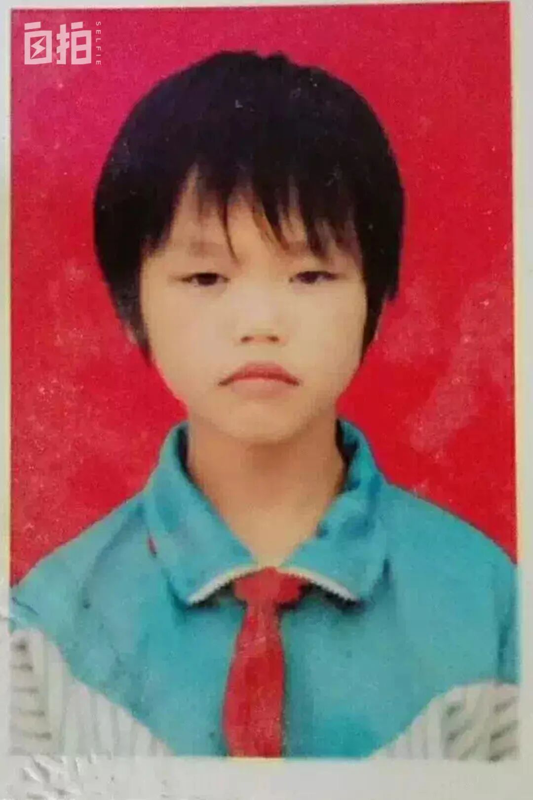 我小学四年级的证件照,看起来一副桀骜不驯的样子,那时候很瘦,也不爱笑了。