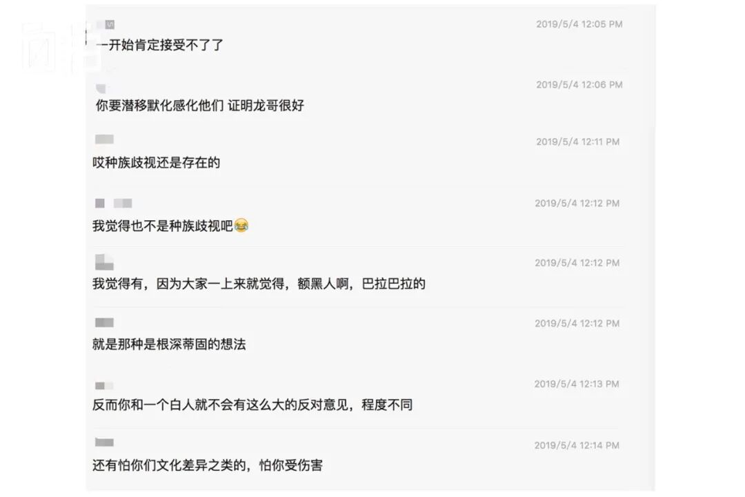 还是有眼尖的人看到。当时表哥评论men in black(黑人),还有一个初中老师评论,那位哥是?我都没回复。我也想和广东老家的朋友坦白,但是他们并没有见过太多黑人,肯定也听过关于黑人的负面新闻。
