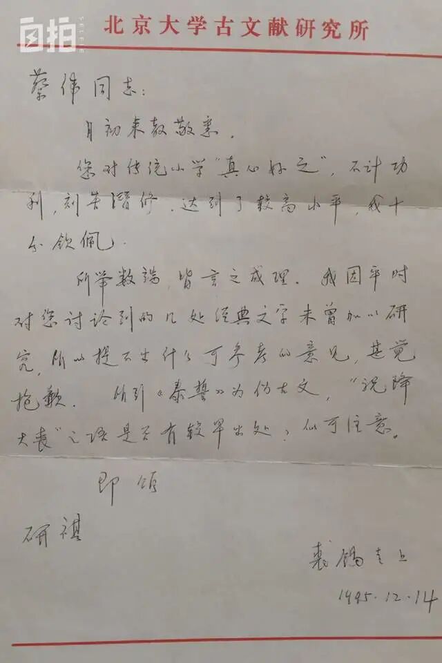 自学的过程中,我也遇到很多难以独立解决的问题。裘锡圭教授是这个领域公认的名家,我看过他在很权威的杂志上发表的文章,于是萌生了写信给他请教问题的想法。他当时还在北京大学的古文献研究所工作,信寄出之后,我惴惴不安,等了十几天,没想到他真的会回复,之前我也给别的学者写过信,但都杳无音讯了。