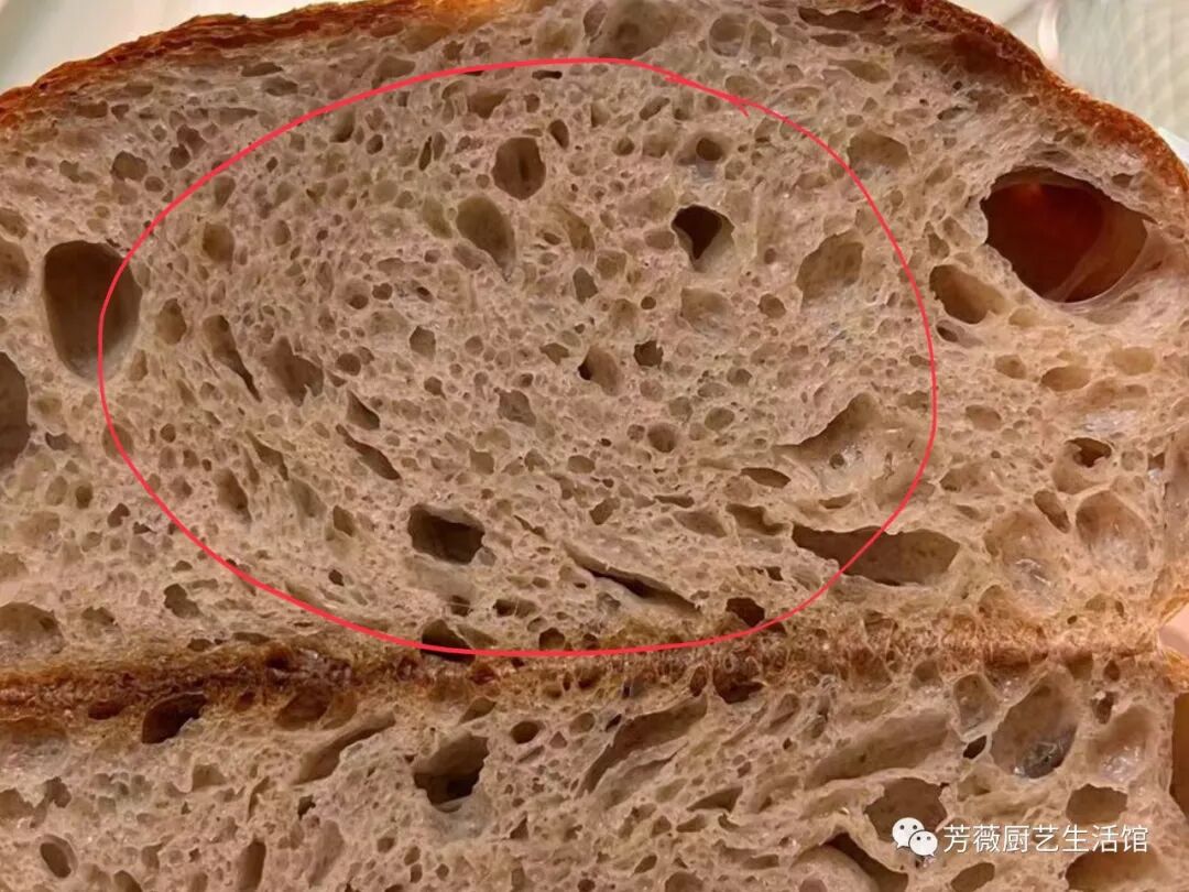 气孔除了是发酵造成的,大小还跟面筋的延展度息息相关。