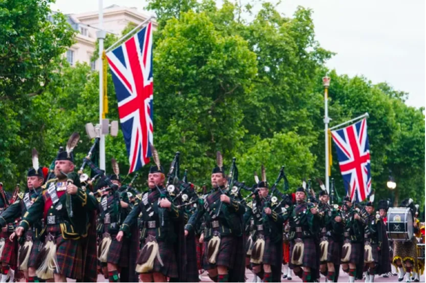 图4:衣着苏格兰格子裙裤的仪仗队。