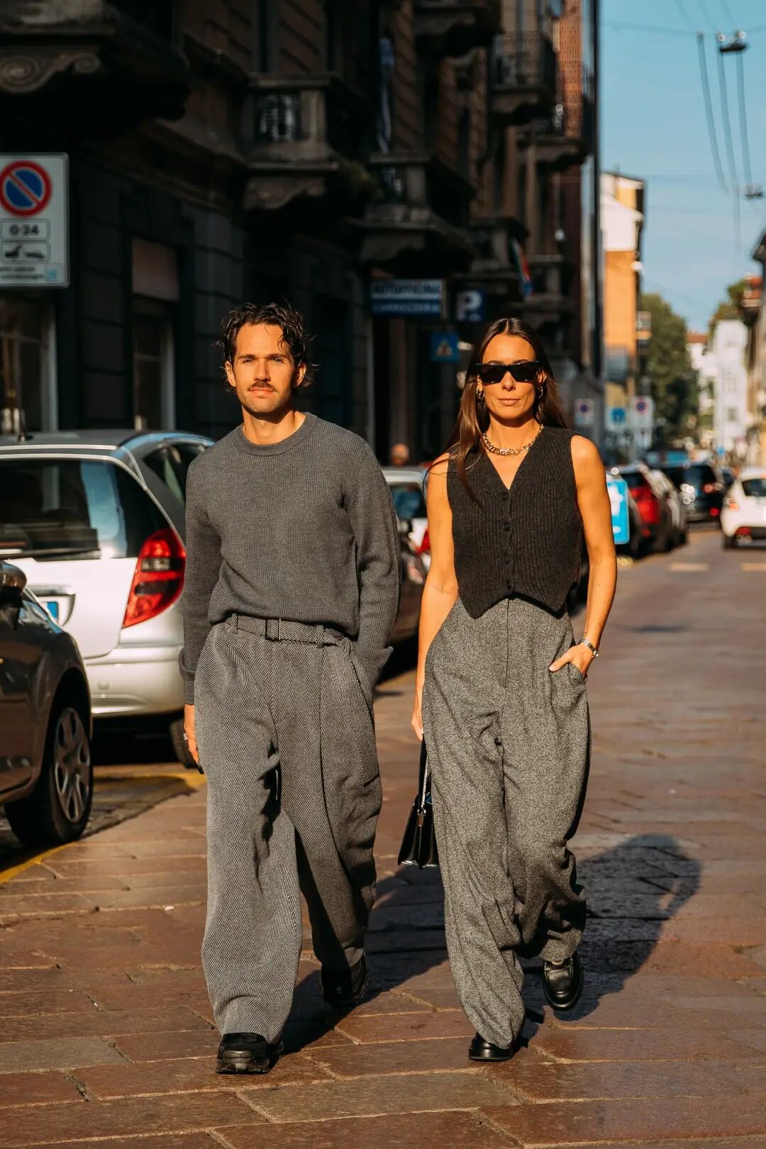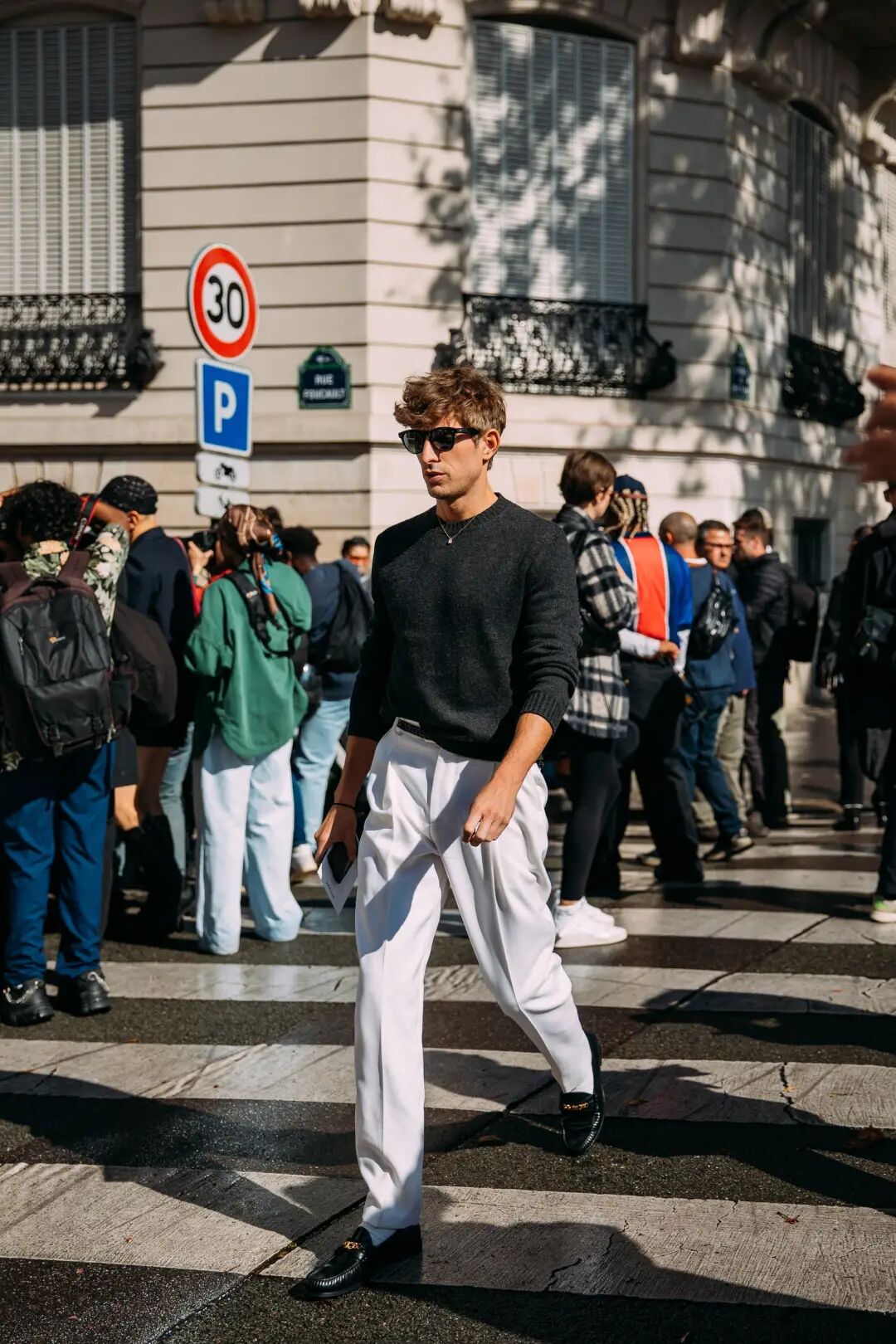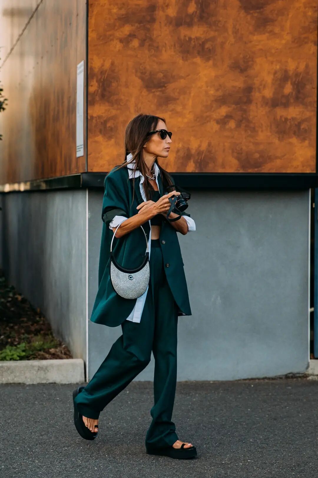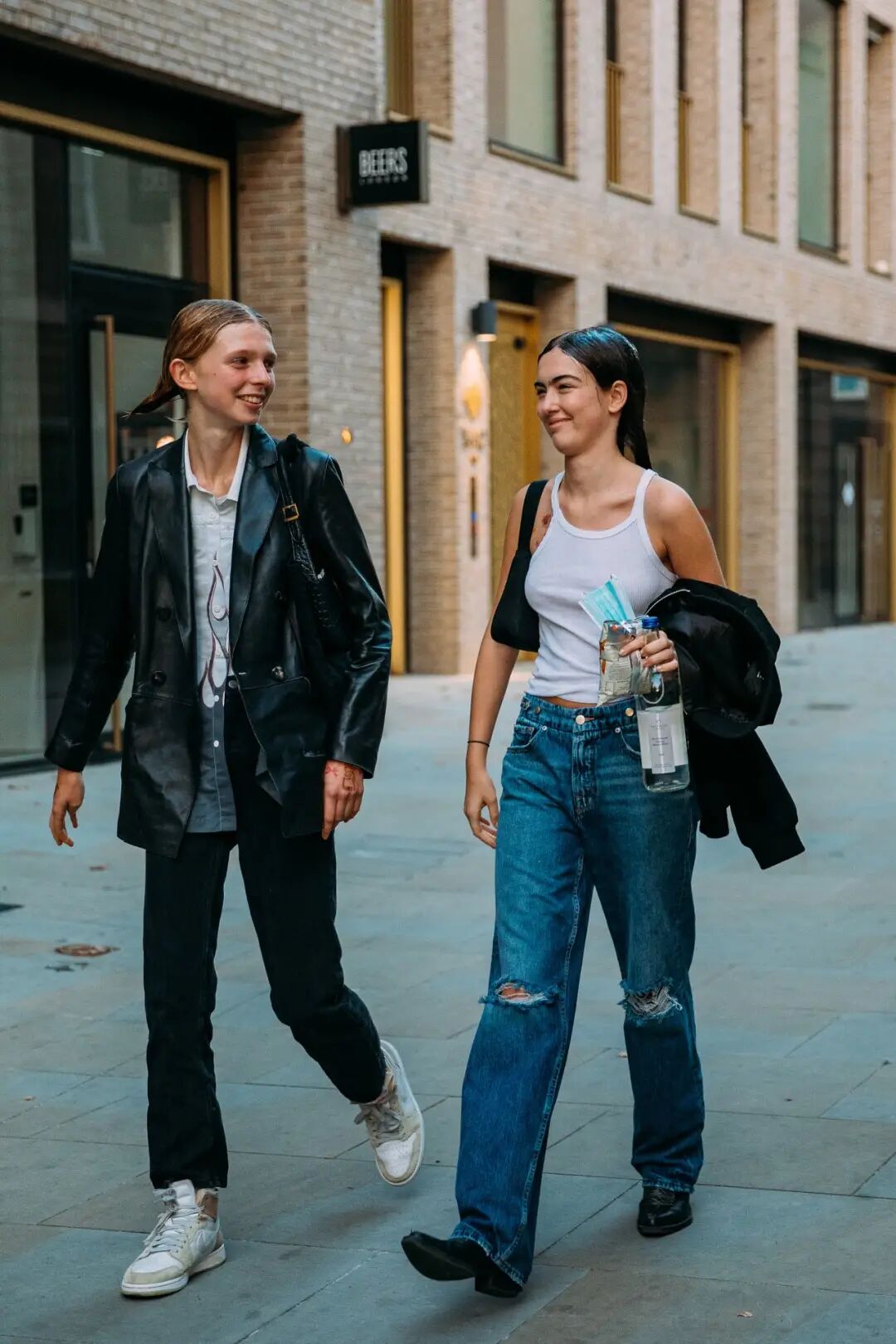 老报友们应该知道,往常,我们可是要分城市单篇给大家盘的,无奈后来都被线上时装周削弱了仪式感,只能看博主们的宅家对镜自拍了。那既然今年素材这么丰富,这个传统项目也该回归了是不是?通知通知,本季时装周街拍精华仅此一篇,不单单让你们美图刷到爽,编辑还会结合时装精的穿搭,给大家总结一波流行趋势,错过得哭到下一季的那种!时装周秀场外的人群分两种,想出风头的和看淡一切的,前者一看就是“来参加时装周”的,大玩时装梗、造型高调、Pose也专业。后者则是非Social型时尚人士,低调内敛,只求安心看场秀。想出风头有两种方法,一种是走极简主义风的,穿搭极尽简洁,但是会想办法提炼高级感。比如,出发前思考带什么衣服时,就已经在心里定好基调,能装箱的单品,属性都得很飒很利落“大女人”,且是独立的那种。一旦风格定下来,可选单品的范围就缩小了,西装套装、衬衫、阔腿裤等就立马从衣橱里脱颖而出。再从单品的设计风格上下手,花色不宜跳脱繁复,剪裁越直白明了越好。比如,同是衬衫,基础款就比有着印花、蕾丝、或者色块拼接等细节要更符合极简的定义。还得注意配色,顺色当然是最保险的,但是身为时装精,全身上下一个色只能算入门方案,能深深浅浅地穿出渐变层次,那才是会让他们注意到彼此,并在心里暗暗说“可以啊”的高阶玩法。最后是包鞋配饰的选择,要么得成为全身的点睛之笔,让人看起来是高级又有趣的。比如挑一只当季比较红的包包或者鞋款,由于配饰在整体造型中的“占地面积”比较小,颜色跳一点也没关系的。要么,就“古板”点,坚决不要破坏前面营造好的高级感,配饰的气质也严格拿捏,就跟整体搭配呼应,不出半点差错。想出风头的第二种方法,我行我素地走“极繁主义”路线,就是把自己穿成“万花筒”(不是)。好比写文章,极简主义娓娓道来,极繁主义则相反,华丽辞藻轮番轰炸,眼花缭乱。吸睛是最终目的,不明所以也好、啧啧称奇也好,所谓内行看门道,外行看热闹,各取所需。再看看走这个风格的时装精们在出发前Fitting时,会把哪些单品装进行李箱里呢?首先,风格可以跨次元,比如你本来准备带一身运动风的装备,那作为它的搭档,不妨选点通勤风的外套鞋子包包什么的,等你混搭灵感来了,就能派上用场。其次,单品的细节感戏份要重。大女人风那种直来直去的剪裁不够格,镂空、挖剪、解构,总要占一样的!哪怕你搭配功力一般,直接把这些单品穿上身也让人不明觉厉,一看,就得是“很懂时装”的样子。最后,到了加包鞋配饰这步了,记住有趣吸睛才是宗旨。千万不要手软,别担心Too Much,因为到了现场你会发现:我这才哪儿到哪儿呀!不得不说,“极繁主义”这一组还挺鱼龙混杂,真懂时装的和装懂的都在里面穿梭,所以点评起来误伤率很高。而且,观众也不同,有一批是关注设计师风格、勤翻秀场图片、默默啃过秀评的,就是来找刺激的;还有一批是单纯直接来寻找日常穿搭灵感的,这两种观众往往会得出截然不同的点评。之所以淡定,是因为这波人的目的,仅仅是低调看个秀,他们的身份可能是电商的买手、杂志编辑、也有可能是赶秀路过的模特。参加时装周是他们的工作,但被拍可不是,至少没有那么重的KPI。干净体面即可了呀,但他们也好歹是浸淫时尚圈多年的专业人士,每天接触的都是第一手的趋势潮流,深入浅出,多多少少是能反应到私服上的,其实对于关注穿搭灵感的人来说,借鉴意义更大。模特组一半是看人,一半是看穿搭。她们经常要顶着上一场秀的妆发,赶去下一场秀的后台做准备,穿的就是自己日常的衣服。这种不搭反倒是有种限定的氛围感,时装周专属“OFF DUTY”风格。也有为了上镜效果稍微捯饬一下的,但还是要照顾易穿脱的需求,所以叠穿啦、混搭啦什么的基本看不到,简单好看(也好脱)才是最要紧的。能从她们的穿搭中总结的规律都非常基础好学,比如同是西装外套,他们就会在里面加舒服到不行的帽衫、T恤等等,包教包会,出错率低。再比如套头衫不穿,脱下来系在肩膀上这招~就是一个超模“接地气”的示范。至于配饰么,那真的日常味道很浓,鞋子是方便赶路的球鞋,包包除了有点装饰意义还要有实用意义,难怪越看越亲切。好了,图翻够,编辑要掏出笔记本,给大家正经分享几个今年需要关注的时尚趋势:之前一说时装周街拍,大家都默认是来看女生的,哪怕到了本应该是男生为主导的男装周,也免不了要被女生们抢去风头。但是,这一现象正在被改变,主动出击的是男生们自己。男装也有很多花样可以玩,除了正装三件套就是从头到脚运动风的时代,让它过去吧,很无聊的。依旧是西装,可以从内搭下手,让自己看起来更讲究。或者,直接真空。编辑发现无论男生女生,这样穿都性感到冒烟。西装裤就别老老实实配西装了,可以换成套头衫、衬衫什么的,再加些简单的配饰,还是多数男生能接受的尺度,但是看起来有层次感不少。衬衫也大有发挥空间,敞着穿和扣着穿各有各的看头,要松弛还是精致就看你选啦。古着风的皮外套也是男生们的凹造型利器,但今年在秀场外看到的这种,编辑觉得接下来会大流行。四个口袋的设计有点狩猎夹克的影子,但是,无论是像右边这样“偷懒”就配一身黑,还是像左边这样内搭和下装配得精致考究又复古的,都好看。(左图)灰色针织背心外面,出其不意地加了一条围巾,跟小