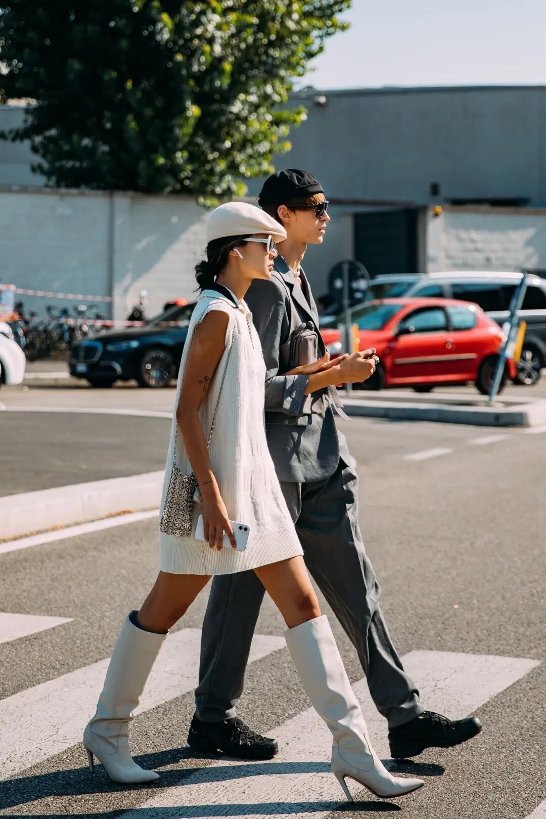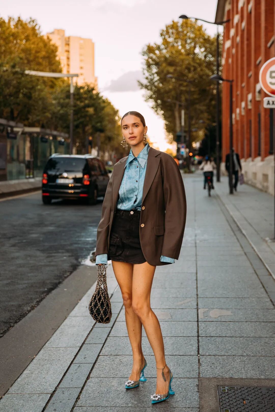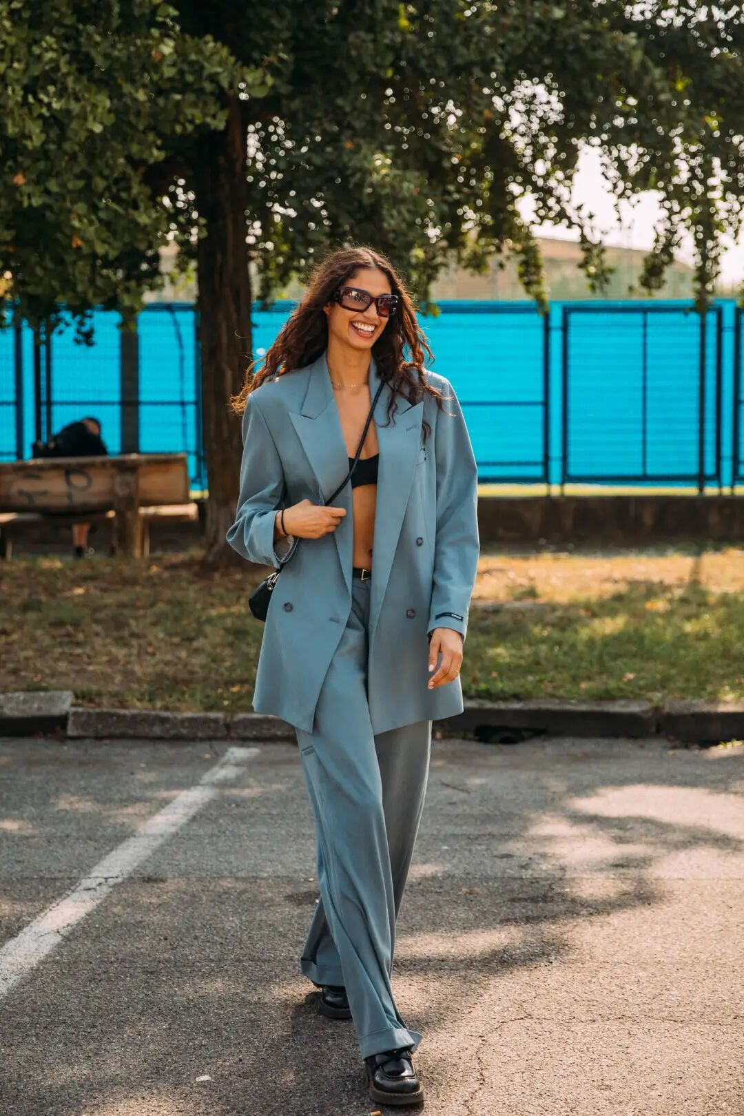 老报友们应该知道,往常,我们可是要分城市单篇给大家盘的,无奈后来都被线上时装周削弱了仪式感,只能看博主们的宅家对镜自拍了。那既然今年素材这么丰富,这个传统项目也该回归了是不是?通知通知,本季时装周街拍精华仅此一篇,不单单让你们美图刷到爽,编辑还会结合时装精的穿搭,给大家总结一波流行趋势,错过得哭到下一季的那种!时装周秀场外的人群分两种,想出风头的和看淡一切的,前者一看就是“来参加时装周”的,大玩时装梗、造型高调、Pose也专业。后者则是非Social型时尚人士,低调内敛,只求安心看场秀。想出风头有两种方法,一种是走极简主义风的,穿搭极尽简洁,但是会想办法提炼高级感。比如,出发前思考带什么衣服时,就已经在心里定好基调,能装箱的单品,属性都得很飒很利落“大女人”,且是独立的那种。一旦风格定下来,可选单品的范围就缩小了,西装套装、衬衫、阔腿裤等就立马从衣橱里脱颖而出。再从单品的设计风格上下手,花色不宜跳脱繁复,剪裁越直白明了越好。比如,同是衬衫,基础款就比有着印花、蕾丝、或者色块拼接等细节要更符合极简的定义。还得注意配色,顺色当然是最保险的,但是身为时装精,全身上下一个色只能算入门方案,能深深浅浅地穿出渐变层次,那才是会让他们注意到彼此,并在心里暗暗说“可以啊”的高阶玩法。最后是包鞋配饰的选择,要么得成为全身的点睛之笔,让人看起来是高级又有趣的。比如挑一只当季比较红的包包或者鞋款,由于配饰在整体造型中的“占地面积”比较小,颜色跳一点也没关系的。要么,就“古板”点,坚决不要破坏前面营造好的高级感,配饰的气质也严格拿捏,就跟整体搭配呼应,不出半点差错。想出风头的第二种方法,我行我素地走“极繁主义”路线,就是把自己穿成“万花筒”(不是)。好比写文章,极简主义娓娓道来,极繁主义则相反,华丽辞藻轮番轰炸,眼花缭乱。吸睛是最终目的,不明所以也好、啧啧称奇也好,所谓内行看门道,外行看热闹,各取所需。再看看走这个风格的时装精们在出发前Fitting时,会把哪些单品装进行李箱里呢?首先,风格可以跨次元,比如你本来准备带一身运动风的装备,那作为它的搭档,不妨选点通勤风的外套鞋子包包什么的,等你混搭灵感来了,就能派上用场。其次,单品的细节感戏份要重。大女人风那种直来直去的剪裁不够格,镂空、挖剪、解构,总要占一样的!哪怕你搭配功力一般,直接把这些单品穿上身也让人不明觉厉,一看,就得是“很懂时装”的样子。最后,到了加包鞋配饰这步了,记住有趣吸睛才是宗旨。千万不要手软,别担心Too Much,因为到了现场你会发现:我这才哪儿到哪儿呀!不得不说,“极繁主义”这一组还挺鱼龙混杂,真懂时装的和装懂的都在里面穿梭,所以点评起来误伤率很高。而且,观众也不同,有一批是关注设计师风格、勤翻秀场图片、默默啃过秀评的,就是来找刺激的;还有一批是单纯直接来寻找日常穿搭灵感的,这两种观众往往会得出截然不同的点评。之所以淡定,是因为这波人的目的,仅仅是低调看个秀,他们的身份可能是电商的买手、杂志编辑、也有可能是赶秀路过的模特。参加时装周是他们的工作,但被拍可不是,至少没有那么重的KPI。干净体面即可了呀,但他们也好歹是浸淫时尚圈多年的专业人士,每天接触的都是第一手的趋势潮流,深入浅出,多多少少是能反应到私服上的,其实对于关注穿搭灵感的人来说,借鉴意义更大。模特组一半是看人,一半是看穿搭。她们经常要顶着上一场秀的妆发,赶去下一场秀的后台做准备,穿的就是自己日常的衣服。这种不搭反倒是有种限定的氛围感,时装周专属“OFF DUTY”风格。也有为了上镜效果稍微捯饬一下的,但还是要照顾易穿脱的需求,所以叠穿啦、混搭啦什么的基本看不到,简单好看(也好脱)才是最要紧的。能从她们的穿搭中总结的规律都非常基础好学,比如同是西装外套,他们就会在里面加舒服到不行的帽衫、T恤等等,包教包会,出错率低。再比如套头衫不穿,脱下来系在肩膀上这招~就是一个超模“接地气”的示范。至于配饰么,那真的日常味道很浓,鞋子是方便赶路的球鞋,包包除了有点装饰意义还要有实用意义,难怪越看越亲切。好了,图翻够,编辑要掏出笔记本,给大家正经分享几个今年需要关注的时尚趋势:之前一说时装周街拍,大家都默认是来看女生的,哪怕到了本应该是男生为主导的男装周,也免不了要被女生们抢去风头。但是,这一现象正在被改变,主动出击的是男生们自己。男装也有很多花样可以玩,除了正装三件套就是从头到脚运动风的时代,让它过去吧,很无聊的。依旧是西装,可以从内搭下手,让自己看起来更讲究。或者,直接真空。编辑发现无论男生女生,这样穿都性感到冒烟。西装裤就别老老实实配西装了,可以换成套头衫、衬衫什么的,再加些简单的配饰,还是多数男生能接受的尺度,但是看起来有层次感不少。衬衫也大有发挥空间,敞着穿和扣着穿各有各的看头,要松弛还是精致就看你选啦。古着风的皮外套也是男生们的凹造型利器,但今年在秀场外看到的这种,编辑觉得接下来会大流行。四个口袋的设计有点狩猎夹克的影子,但是,无论是像右边这样“偷懒”就配一身黑,还是像左边这样内搭和下装配得精致考究又复古的,都好看。(左图)灰色针织背心外面,出其不意地加了一条围巾,跟小