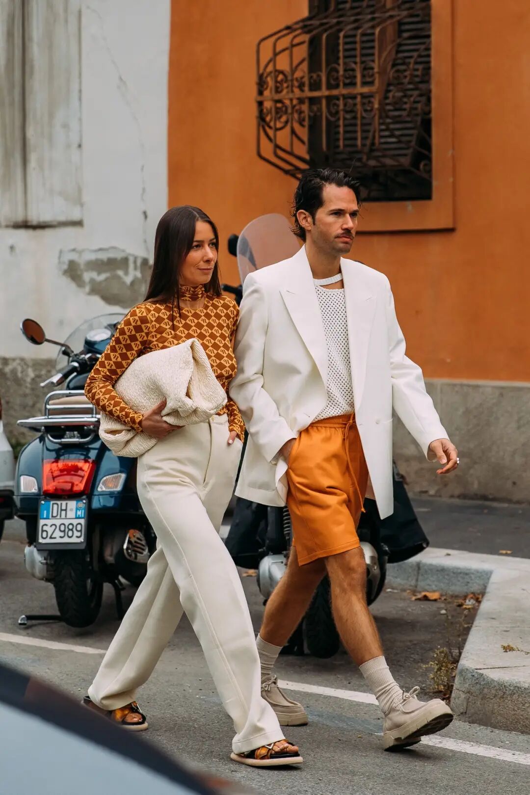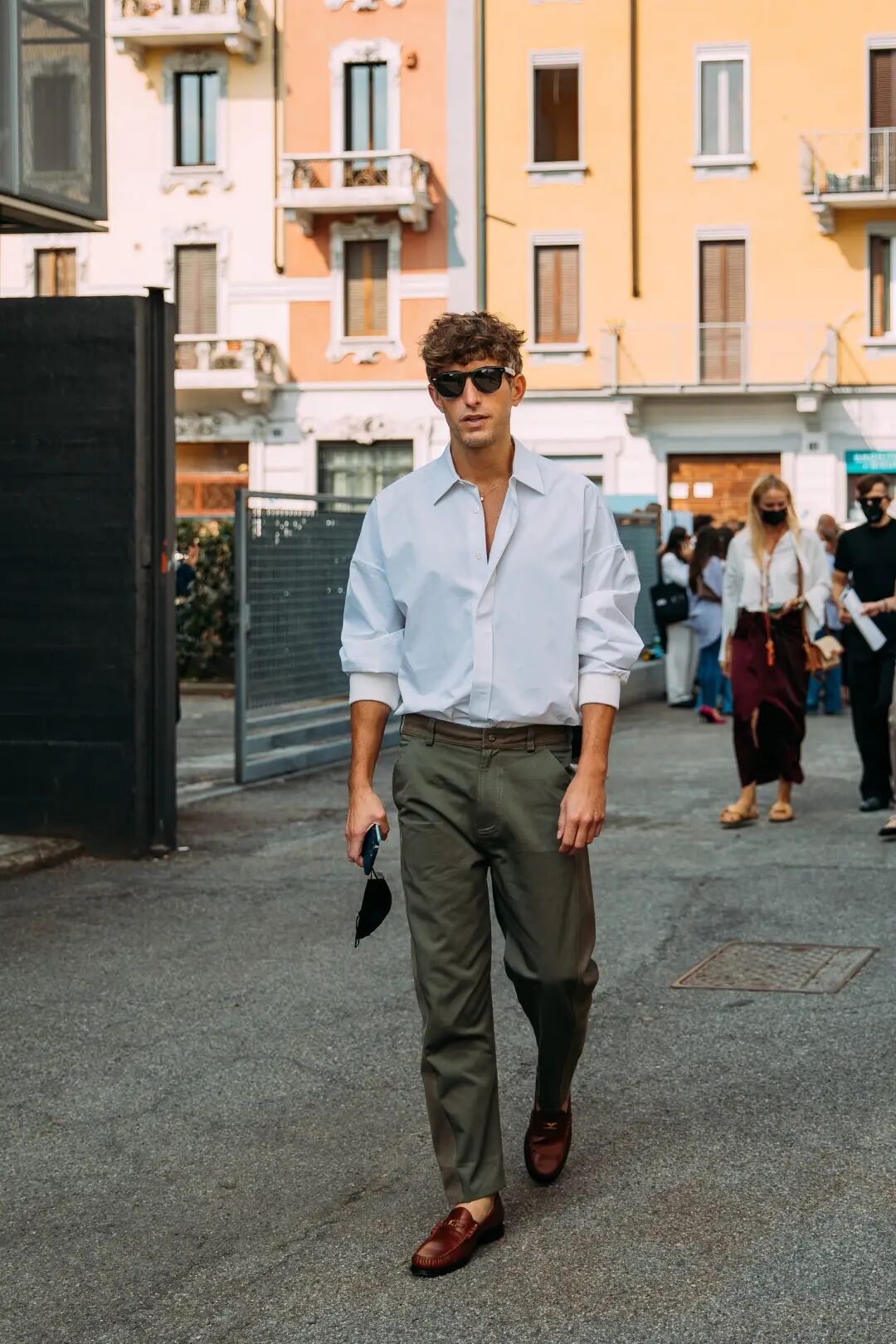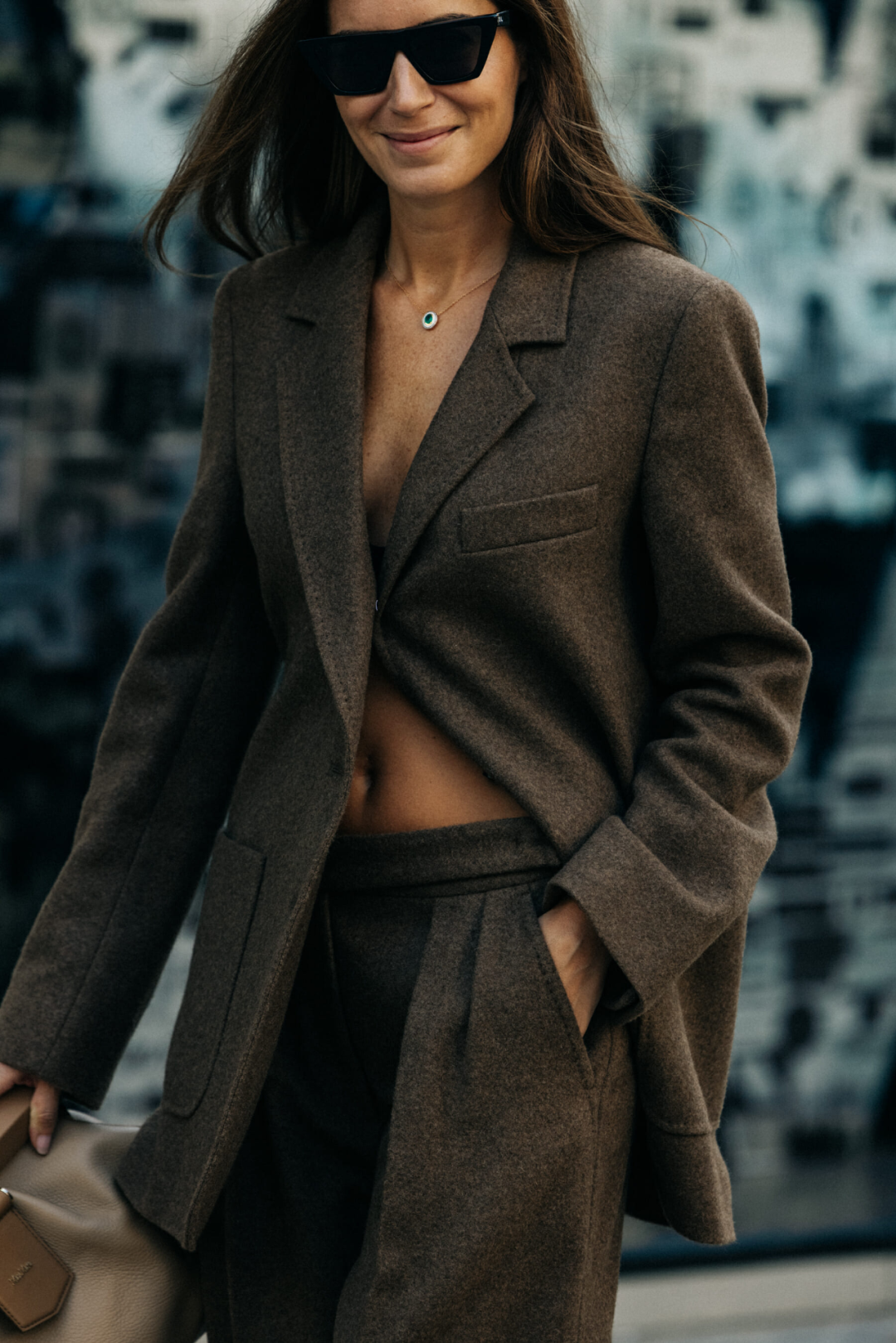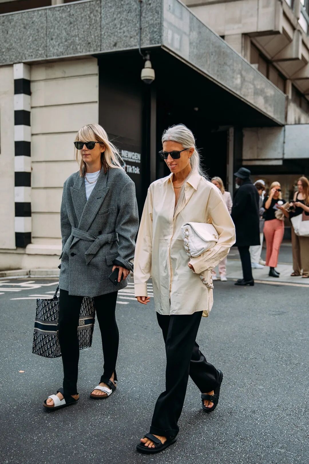 老报友们应该知道,往常,我们可是要分城市单篇给大家盘的,无奈后来都被线上时装周削弱了仪式感,只能看博主们的宅家对镜自拍了。那既然今年素材这么丰富,这个传统项目也该回归了是不是?通知通知,本季时装周街拍精华仅此一篇,不单单让你们美图刷到爽,编辑还会结合时装精的穿搭,给大家总结一波流行趋势,错过得哭到下一季的那种!时装周秀场外的人群分两种,想出风头的和看淡一切的,前者一看就是“来参加时装周”的,大玩时装梗、造型高调、Pose也专业。后者则是非Social型时尚人士,低调内敛,只求安心看场秀。想出风头有两种方法,一种是走极简主义风的,穿搭极尽简洁,但是会想办法提炼高级感。比如,出发前思考带什么衣服时,就已经在心里定好基调,能装箱的单品,属性都得很飒很利落“大女人”,且是独立的那种。一旦风格定下来,可选单品的范围就缩小了,西装套装、衬衫、阔腿裤等就立马从衣橱里脱颖而出。再从单品的设计风格上下手,花色不宜跳脱繁复,剪裁越直白明了越好。比如,同是衬衫,基础款就比有着印花、蕾丝、或者色块拼接等细节要更符合极简的定义。还得注意配色,顺色当然是最保险的,但是身为时装精,全身上下一个色只能算入门方案,能深深浅浅地穿出渐变层次,那才是会让他们注意到彼此,并在心里暗暗说“可以啊”的高阶玩法。最后是包鞋配饰的选择,要么得成为全身的点睛之笔,让人看起来是高级又有趣的。比如挑一只当季比较红的包包或者鞋款,由于配饰在整体造型中的“占地面积”比较小,颜色跳一点也没关系的。要么,就“古板”点,坚决不要破坏前面营造好的高级感,配饰的气质也严格拿捏,就跟整体搭配呼应,不出半点差错。想出风头的第二种方法,我行我素地走“极繁主义”路线,就是把自己穿成“万花筒”(不是)。好比写文章,极简主义娓娓道来,极繁主义则相反,华丽辞藻轮番轰炸,眼花缭乱。吸睛是最终目的,不明所以也好、啧啧称奇也好,所谓内行看门道,外行看热闹,各取所需。再看看走这个风格的时装精们在出发前Fitting时,会把哪些单品装进行李箱里呢?首先,风格可以跨次元,比如你本来准备带一身运动风的装备,那作为它的搭档,不妨选点通勤风的外套鞋子包包什么的,等你混搭灵感来了,就能派上用场。其次,单品的细节感戏份要重。大女人风那种直来直去的剪裁不够格,镂空、挖剪、解构,总要占一样的!哪怕你搭配功力一般,直接把这些单品穿上身也让人不明觉厉,一看,就得是“很懂时装”的样子。最后,到了加包鞋配饰这步了,记住有趣吸睛才是宗旨。千万不要手软,别担心Too Much,因为到了现场你会发现:我这才哪儿到哪儿呀!不得不说,“极繁主义”这一组还挺鱼龙混杂,真懂时装的和装懂的都在里面穿梭,所以点评起来误伤率很高。而且,观众也不同,有一批是关注设计师风格、勤翻秀场图片、默默啃过秀评的,就是来找刺激的;还有一批是单纯直接来寻找日常穿搭灵感的,这两种观众往往会得出截然不同的点评。之所以淡定,是因为这波人的目的,仅仅是低调看个秀,他们的身份可能是电商的买手、杂志编辑、也有可能是赶秀路过的模特。参加时装周是他们的工作,但被拍可不是,至少没有那么重的KPI。干净体面即可了呀,但他们也好歹是浸淫时尚圈多年的专业人士,每天接触的都是第一手的趋势潮流,深入浅出,多多少少是能反应到私服上的,其实对于关注穿搭灵感的人来说,借鉴意义更大。模特组一半是看人,一半是看穿搭。她们经常要顶着上一场秀的妆发,赶去下一场秀的后台做准备,穿的就是自己日常的衣服。这种不搭反倒是有种限定的氛围感,时装周专属“OFF DUTY”风格。也有为了上镜效果稍微捯饬一下的,但还是要照顾易穿脱的需求,所以叠穿啦、混搭啦什么的基本看不到,简单好看(也好脱)才是最要紧的。能从她们的穿搭中总结的规律都非常基础好学,比如同是西装外套,他们就会在里面加舒服到不行的帽衫、T恤等等,包教包会,出错率低。再比如套头衫不穿,脱下来系在肩膀上这招~就是一个超模“接地气”的示范。至于配饰么,那真的日常味道很浓,鞋子是方便赶路的球鞋,包包除了有点装饰意义还要有实用意义,难怪越看越亲切。好了,图翻够,编辑要掏出笔记本,给大家正经分享几个今年需要关注的时尚趋势:之前一说时装周街拍,大家都默认是来看女生的,哪怕到了本应该是男生为主导的男装周,也免不了要被女生们抢去风头。但是,这一现象正在被改变,主动出击的是男生们自己。男装也有很多花样可以玩,除了正装三件套就是从头到脚运动风的时代,让它过去吧,很无聊的。依旧是西装,可以从内搭下手,让自己看起来更讲究。或者,直接真空。编辑发现无论男生女生,这样穿都性感到冒烟。西装裤就别老老实实配西装了,可以换成套头衫、衬衫什么的,再加些简单的配饰,还是多数男生能接受的尺度,但是看起来有层次感不少。衬衫也大有发挥空间,敞着穿和扣着穿各有各的看头,要松弛还是精致就看你选啦。古着风的皮外套也是男生们的凹造型利器,但今年在秀场外看到的这种,编辑觉得接下来会大流行。四个口袋的设计有点狩猎夹克的影子,但是,无论是像右边这样“偷懒”就配一身黑,还是像左边这样内搭和下装配得精致考究又复古的,都好看。(左图)灰色针织背心外面,出其不意地加了一条围巾,跟小