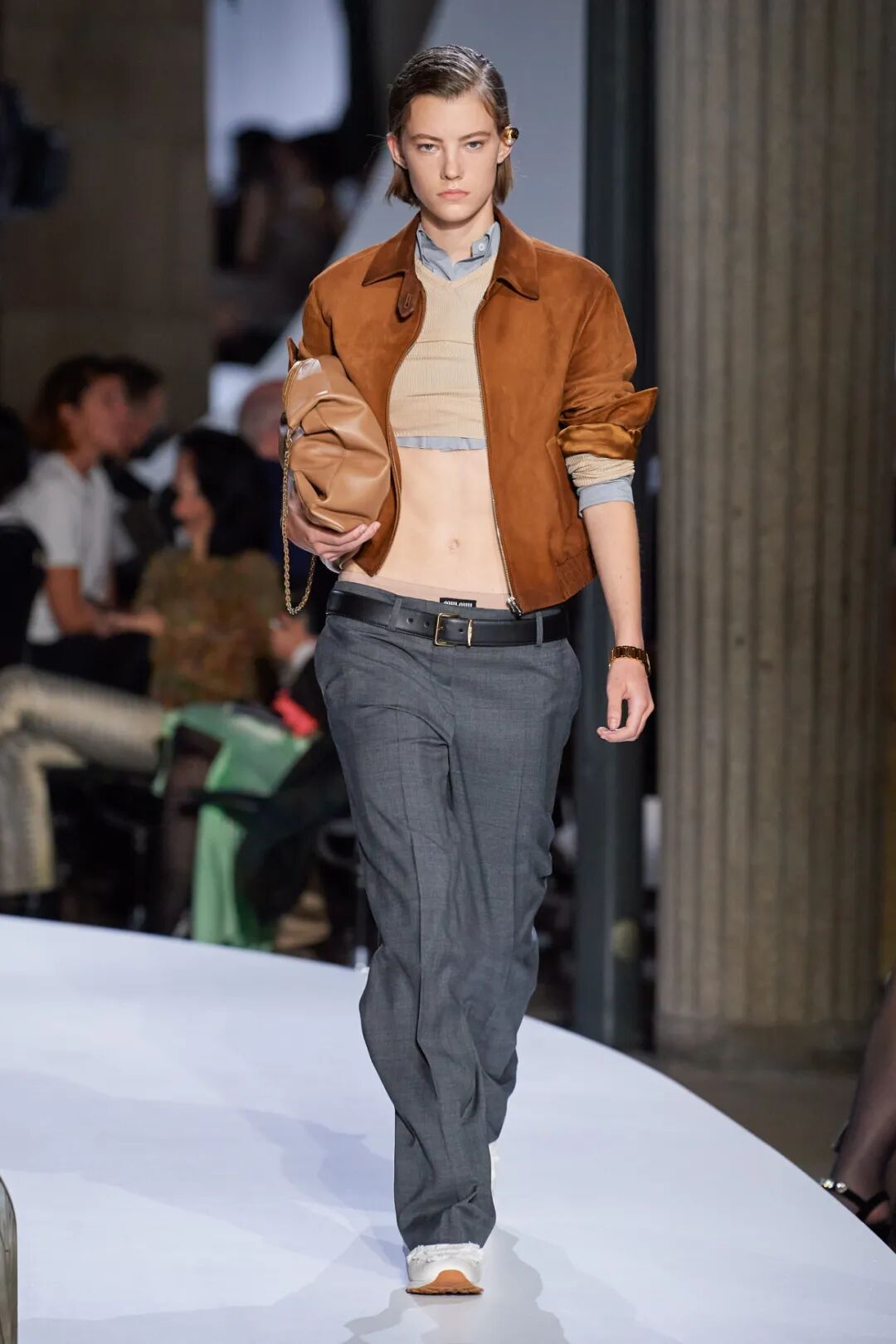 举个栗子🌰Miu Miu的露腰装在今年掀起过一股热潮。但这些衣服并不好穿,因为超短上衣+超低腰的搭配会显得人上身长、下身短,看起来比例不好。![]()