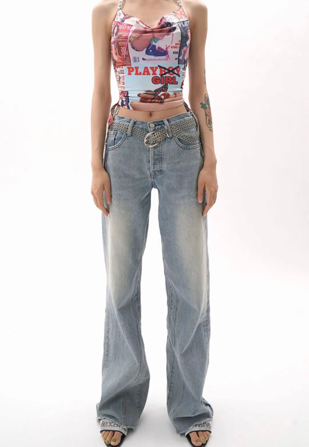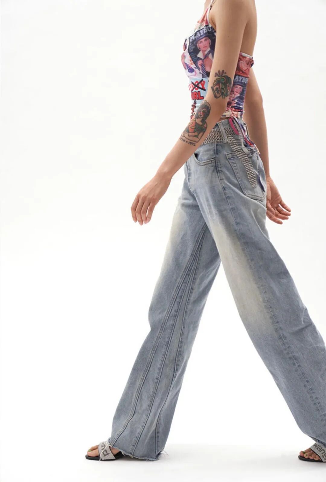 JYOSEI角色 高腰复古阔腿牛仔裤