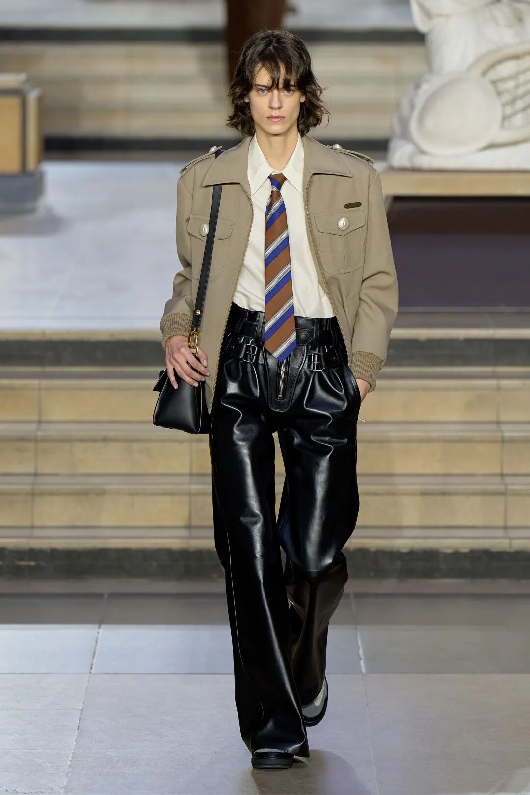 再到LV秀场,那群听艾薇儿的歌、踩着滑板上学的女孩们长大了。她们穿上衬衫、夹克去上班,但仍要留住那条“做自己”的花领带,搭配腰线低一截的松垮阔腿裤,看起来跟其他女孩就是不一样,特别酷、有主见。![]()