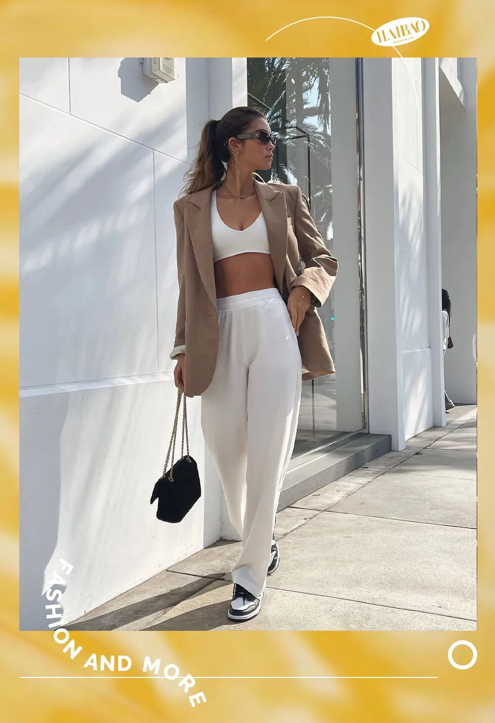 这时候,搭配中的“另一半”就发挥了作用:她加上一件同色系翻领卫衣,用更多的“包裹”与设计感,让整体风格由运动变休闲。改造后的这一身,虽不够正式到穿去上班,但平时逛街、下午茶,完全没有问题。![]()