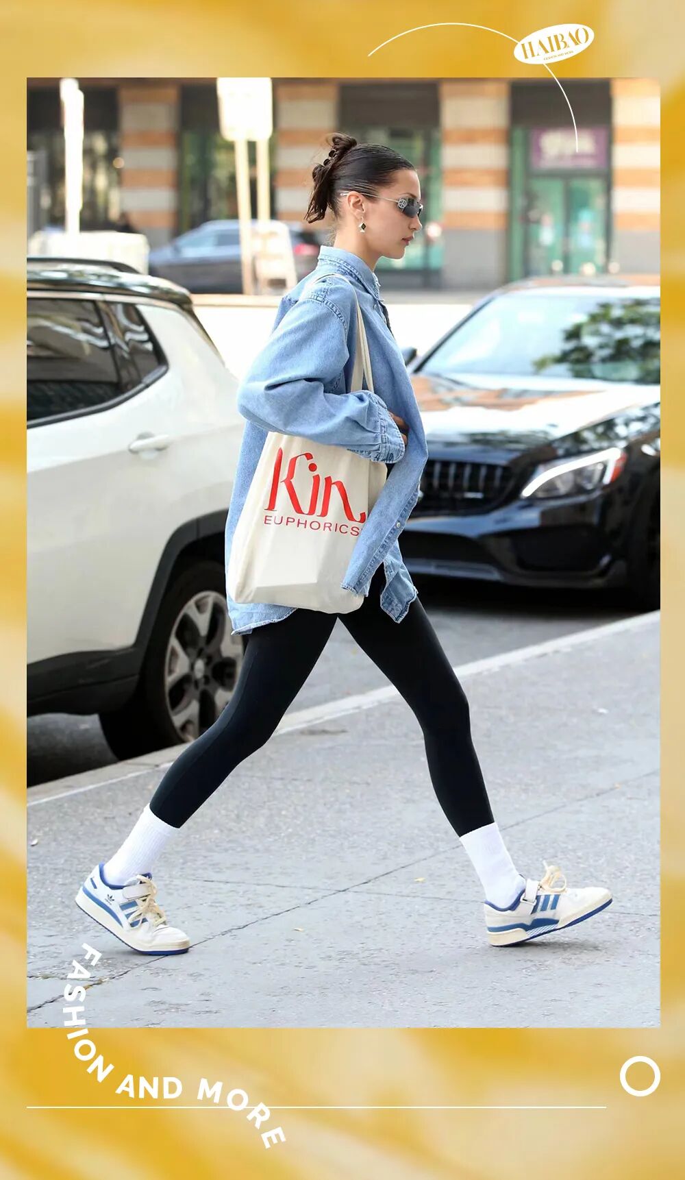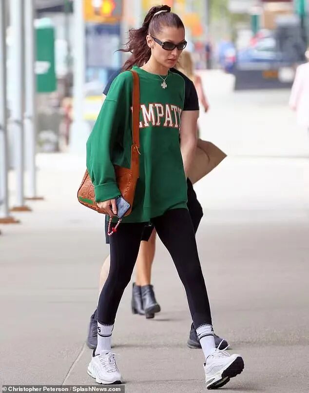 再看看Bella、Hailey这几位,她们有不少街拍,都是在去健身或瑜伽的路上的。怎么穿呢?瑜伽服+套上就出门的圆领卫衣!到达后脱掉外衣,立马可以开始运动。这个操作方便又好看的穿搭公式,也是编辑自己的最爱。![]()