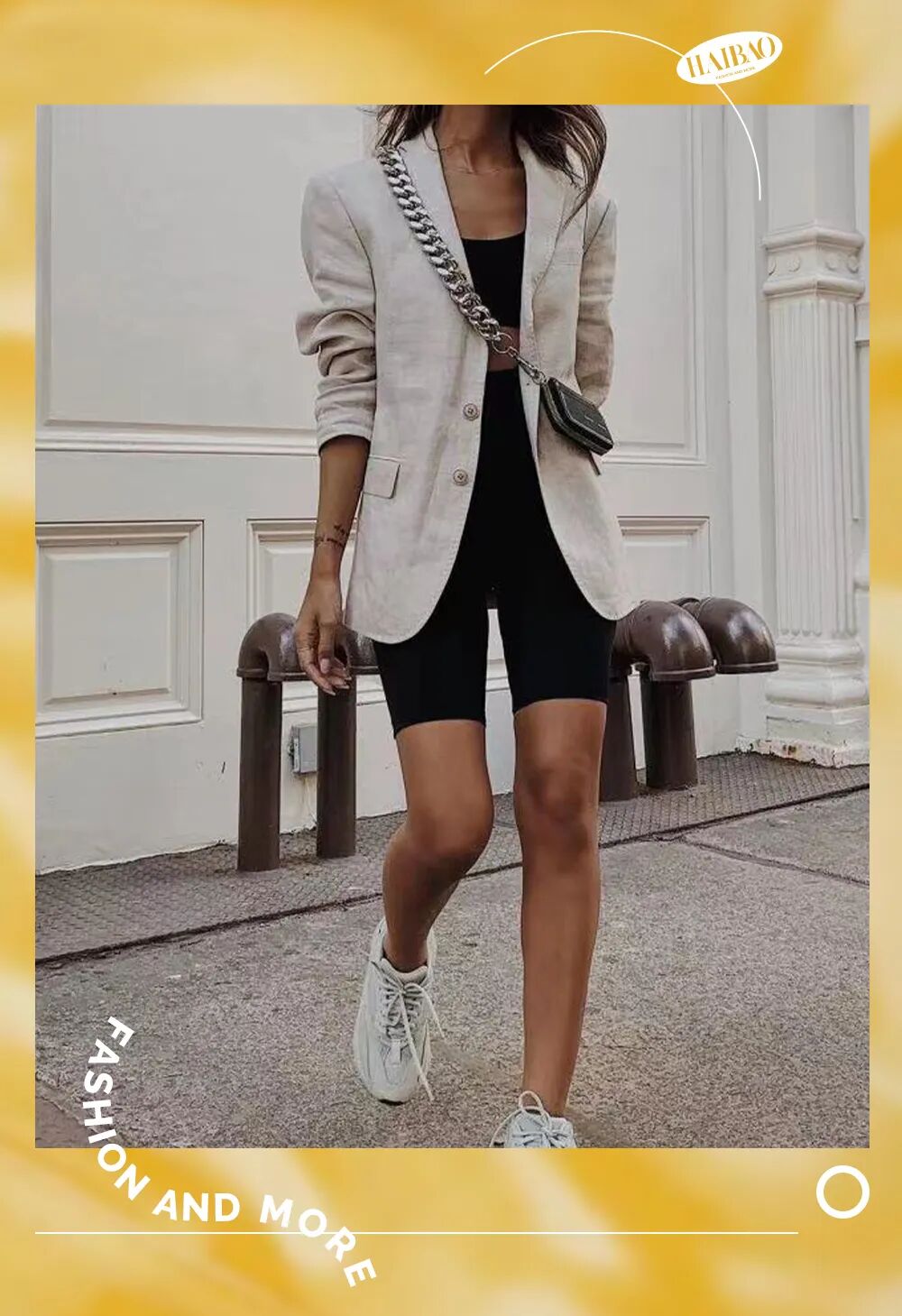 充满夏日气氛的亚麻西装,跟运动健身服穿在一起,那种轻松、随性的混搭劲儿,可以说是把休闲与时髦都稳稳拿住了。![]()