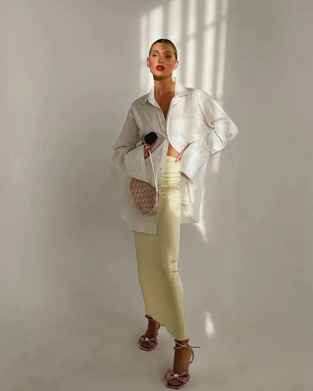 白衬衫的百搭,我们不再强调,光海报就已经给大家提供无数搭配案例了⬆️。