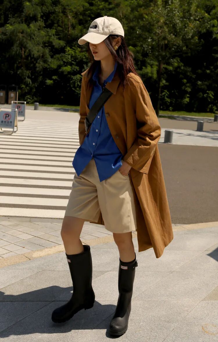 这件版型上也是利落的H型,在此基础上稍微有点oversize,不管搭配西装裤、裙装,还是像Elsa那样底下穿一个雨靴都是当下非常实用的搭配。