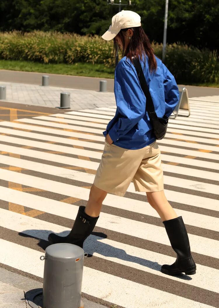 但编辑更爱这件硬挺的白色牛仔衬衫,搭配一双雨靴,正正好适合当下这个季节!且这张图真的太能代表我们一直强调的“舒适的时髦了”,整个人身体呈现出的那种松弛姿态是骗不了人的。![]()