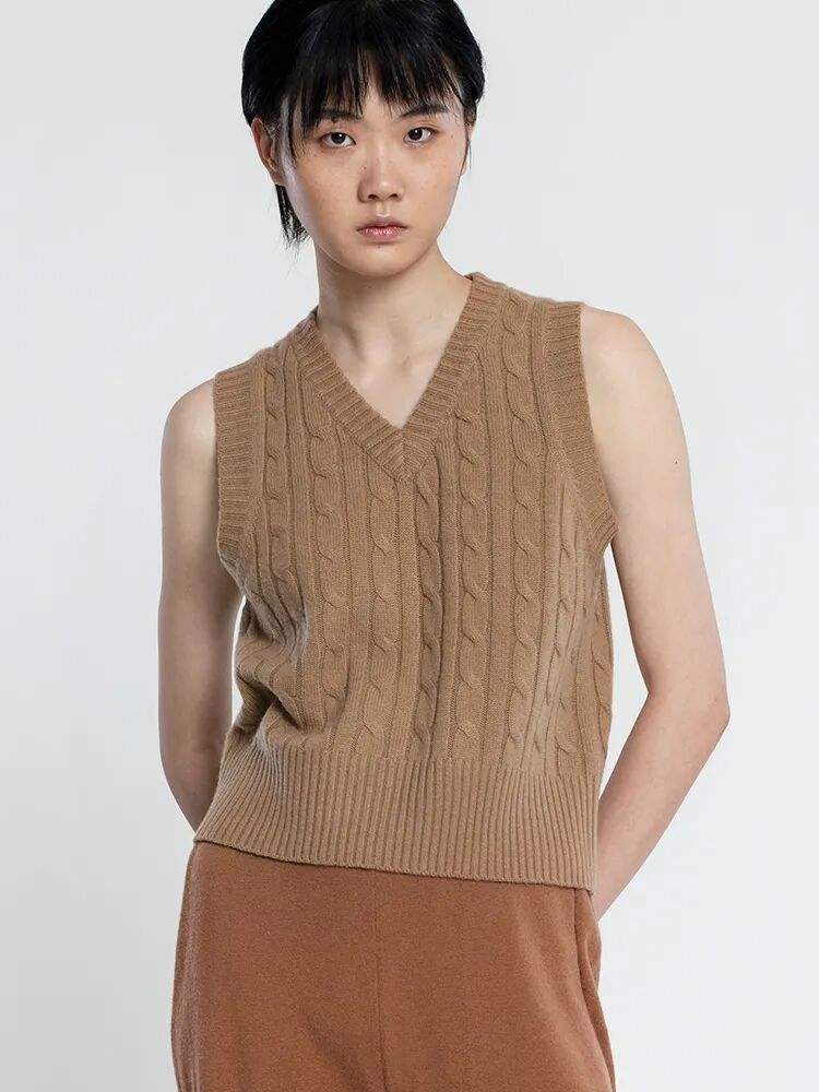 最后推荐一款The Garment也频繁出现的绞花背心,秋天单穿或者和衬衫叠穿简直不要太实用。