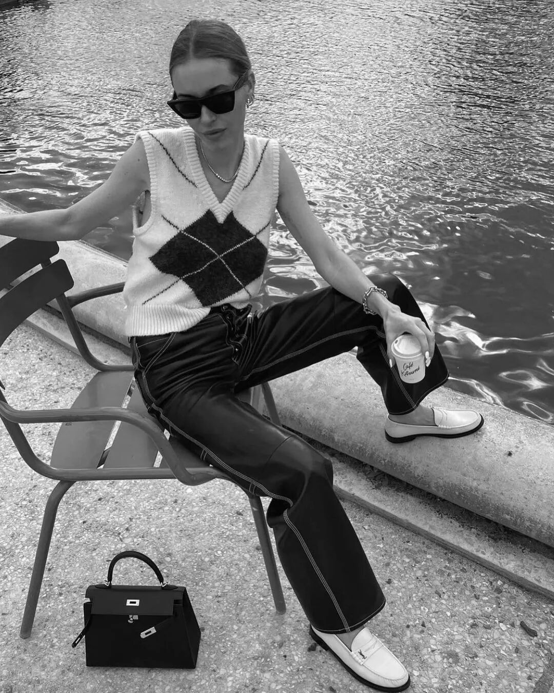 接下来!帮你们在白衬衫里面选了这件超级时髦的针织背心做内搭!