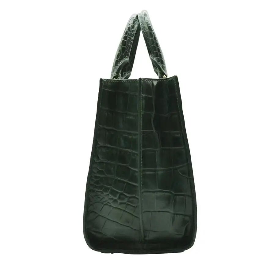 最特别的还是整体采用了牛皮鳄鱼压纹,鳄鱼压纹更复古感,墨绿色就让这种复古变得有了贵气。![]()