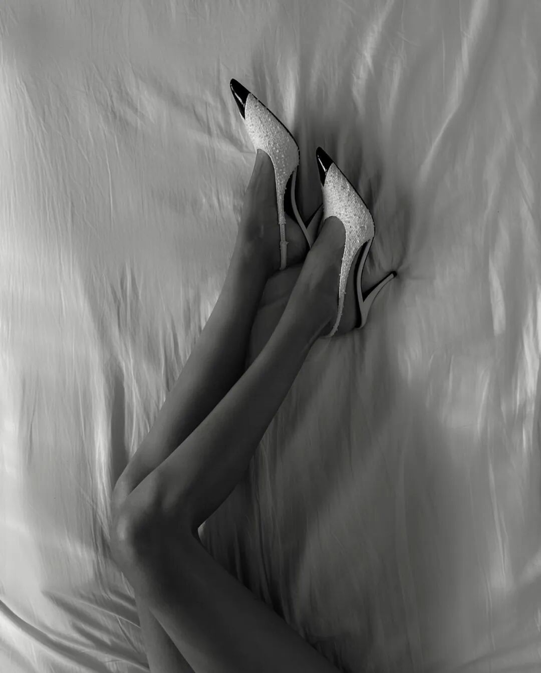她的鞋子,基本上要么是很尖的尖头,要么是很细的鞋跟,为的是那份锋利感。![]()