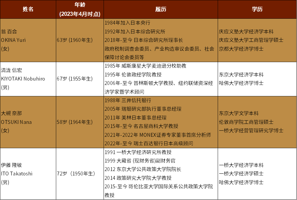 另外,担任过日本央行副行长的人士大都在未来都会成为日本央行行长的有力人选,因此2023~2028年期间的副行长或有可能在2028年成为行长。