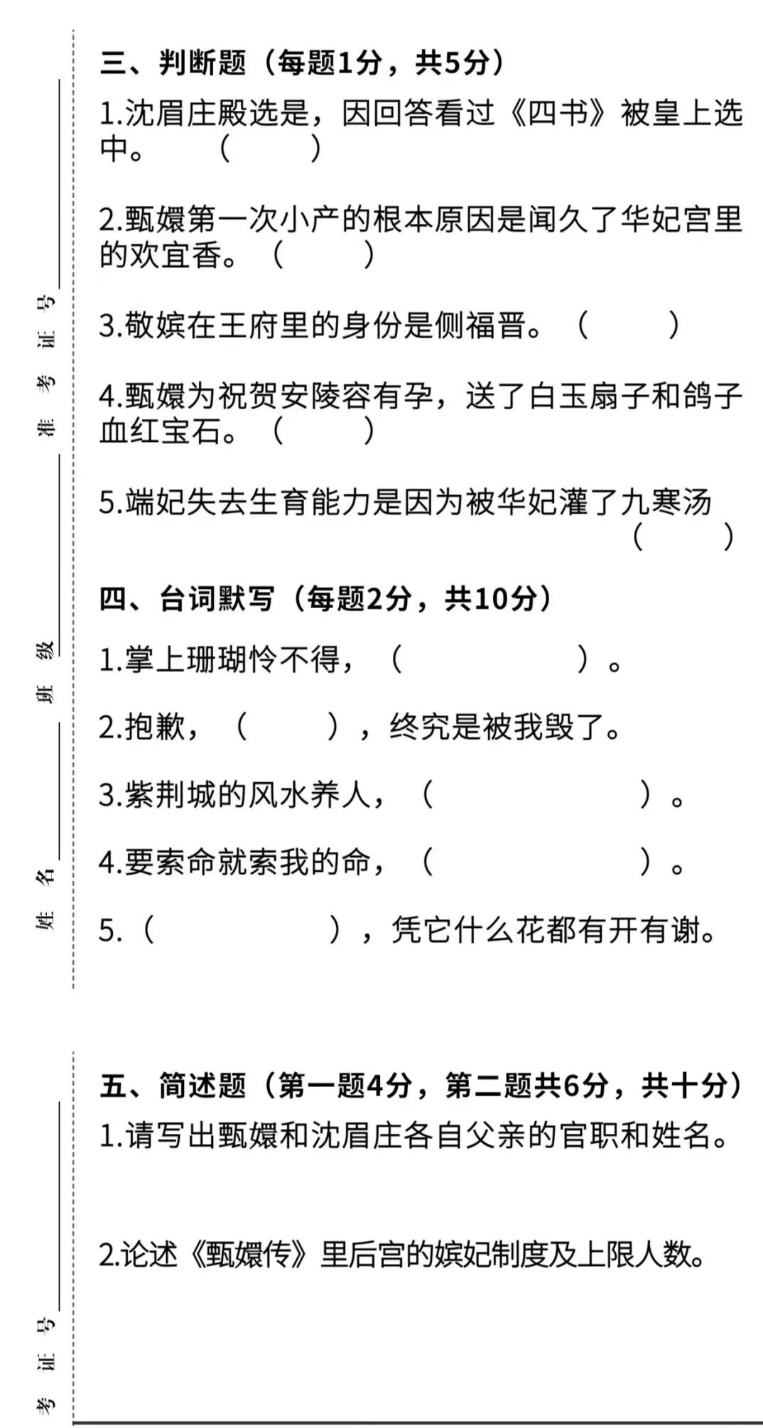 5-甄嬛传判断题、默写题、简述题