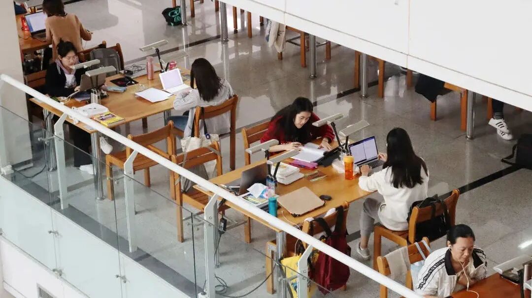 随处都是可以学习的桌椅,听着树叶窸窣的声音,就好像是大自然在帮你记笔记。图书馆内也是一应俱全,让你可以沉浸式学习,直线型提升自己。