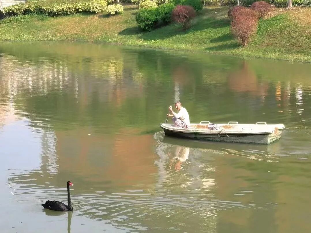 白云青山常在,清水长流,空气常新。南校语心湖中优雅的黑天鹅就像是春天的一个小精灵,带来许多生机。
