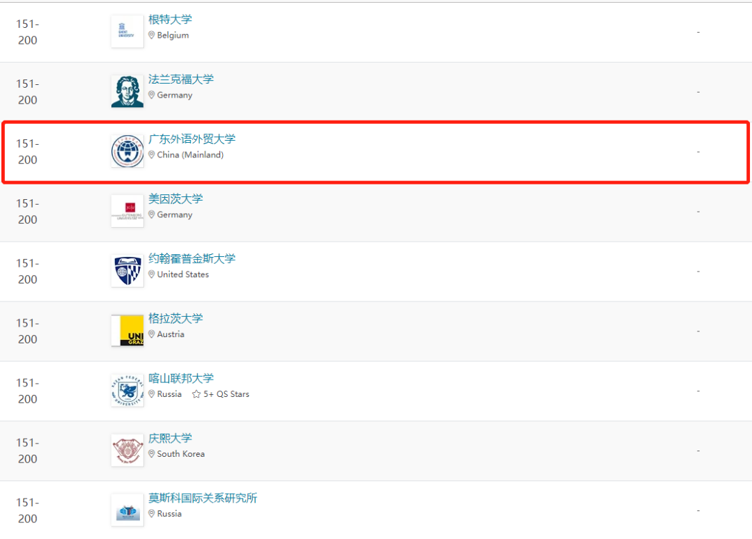 QS发布2022年世界大学学科排名广外语言学学科进入全球前151-200段位,较去年提升一个档位(2021年语言学排名201-250位)。