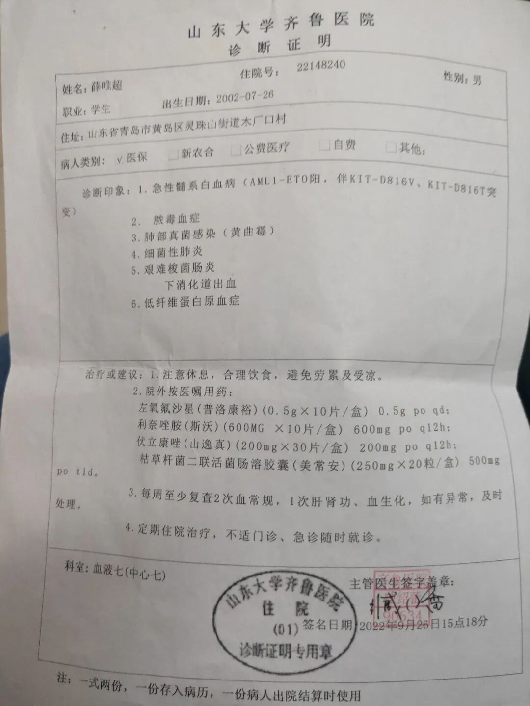 在我准备升入大三之际,我确诊了急性髓系白血病m1,爸爸开始陪我看病,家里最健壮的劳动力只能在医院陪床,已经到了第二次化疗过程,医生说这种类型很可能化疗完后需要骨髓移植,而骨髓移植医生说至少准备50万。加上化疗,要吃的药,以及定期的检查,爸妈亲人都感到苦恼