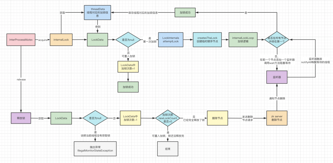 到这里,就讲完了加锁和释放锁的过程,整个加锁和释放锁的过程就如下图所示。