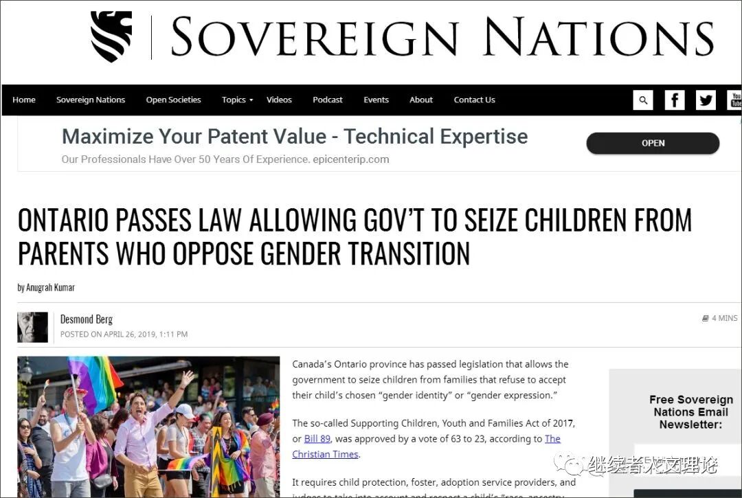 2、2019年,加拿大安大略省通过新法律:不支持孩子变性,政府可以剥夺你的监护权。