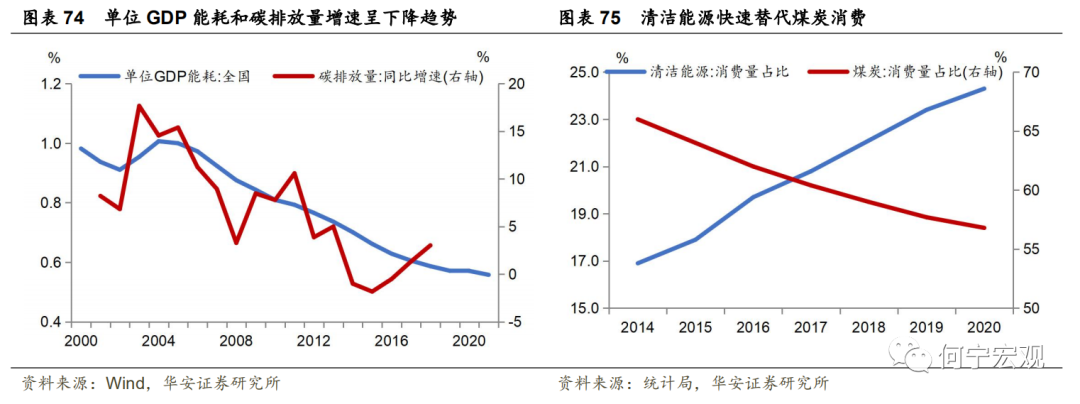 因此,综上所述,我们预计2022年信贷、社融、M2同比较2021年继续回落,但回落幅度较2021年下降,其中M2同比预计回落1个百分点左右,信贷同比回落1个百分点以内,社融存量同比回落1个百分点左右(即落在9%-10%之间,三种测算方法分别为9.4%、10.1%、9.7%)。后疫情时代中国潜在经济增速将逐渐下降,与之伴随的是新动能培育和高质量发展,以及防范化解风险,主要体现在以下几个方面:1.继续防风险。《央行二季度货币政策执行报告》指出“健全金融风险预防、预警、处置、问责制度体系,坚决遏制各类风险反弹回潮,牢牢守住不发生系统性金融风险的底线”,要求“密切监测、重点排查重点领域风险点”,“强化地方党政风险处置属地责任,推动做好重点省份高风险机构数量压降工作”,再结合730政治局会议要求“防范化解重点领域风险”,“落实地方党政主要领导负责的财政金融风险处置机制”,预计重点领域风险防范仍将继续,应主要体现在房地产、地方融资平台(隐性债务)、信托、非标等的收紧,以及打击垄断和防止资本无序扩张。2.深入实施创新驱动战略,全面塑造经济发展新动能。“十四五”规划将创新驱动发展提升到全新的历史高度,将科技自立自强发展上升到国家发展的战略支撑地位。加强新发展理念贯彻落实,促进国民经济在新发展格局下高质量发展,引导全要素生产率在相对高水平路径上增长。1)创新引领带动作用日益凸显,新兴经济发展向好。以新产业、新业态、新模式为核心内容的“三新经济”发展态势迅猛,三新增加值占GDP比重从2015年的15.3%升至2020年的17.1%。创新驱动为经济发展注入新动能,经济发展新动能指数在[5]2015至2020年间同比增长19.6%、22.8%、30.2%、34.9%、26.2%和35.3%,根据央行调查统计司测算,技术进步对经济贡献增长率从2006年的6.3%上升至2019年的36.7%,为构建经济发展新格局提供了强有力的战略支撑。2)研发投入持续加码,原始创新能力长足发展。过去25年间我国R&D投入几乎从零起步,至2020年占GDP比重已达2.4%,2020年发明专利授权量53万件同比增长17.1%,每万研发人员平均发明专利授权量为1,013件[6]。3)高技术产业彰显活力,投资、出口和产出质量齐头并进。2021前三季度高技术制造业固定资产投资额累计同比25.4%,超出制造业10.6个百分点;同期高技术制造业增加值累计同比为20.1%,自2015年以来持续高于制造业均值;出口方面高技术产品保持高额贸易顺差,其占出口金额比重稳定在30%。3.人均GDP跨越一万美元台阶后,我国消费品市场朝满足大众消费多样性和个性化需求方向迈进,消费模式转变和结构升级为经济动能切换注入了新内涵。1)消费对经济贡献持续增强。最终消费率从2010年的49.35%提升至2020年的54.29%,同期资本形成率由46.97%降至43.12%,消费已成为经济运行的压舱石。2)居民消费从注重量的满足转向追求质的提升。我们将教育文化娱乐、医疗保健、其他用品服务[7]定义为非必需消费支出,非必需消费占居民总消费支出比重自2013年以来稳步增长,从19.9%提升至2021年Q3的22.2%。3)网络零售蓬勃发展,新兴零售业态不断涌现。2020年前三季度网上商品和服务零售额占社会消费品零售总额的比重为28.9%,较2015年全年提高16个百分点,网络购物、网上支付、网上外卖和在线教育的网民使用率均有不同幅度的提升。4)城乡消费水平从分化走向弥合。过去十年间城乡消费水平比值从3.42倍降至2.12倍,城乡结构均衡发展有助于持续创造内需、释放消费潜力。4.“碳达峰、碳中和”顶层设计的陆续落地,将推进化石能源消费替代和工业高端绿色转型升级,大力发展新能源并构建清洁低碳高效安全的能源体系,降低工业产业的能源消费和碳排放,逐步实现经济增长和碳排放的脱钩。1)清洁能源对煤炭消费呈“X”字形快速替代。2020年我国能源消费总量49.8亿吨标准煤,天然气、水电、核电、风电等清洁能源消费量占能源消费总量24.3%,较2014年提升7.4%,同期煤炭消费量占比从66%下滑至56.8%。总体定量目标要求非化石能源消费占比在2025、2030和2060年分别达到20%、25%和80%,能源结构加速调整进一步显性化。2)能耗控制方面,“十一五”首次将能耗降低纳入发展目标,2006至2020年三个五年规划期间我国单位GDP能耗降低41.3%,远超同期美国的降幅21.9%。总体定量目标要求2020至2025年单位GDP能耗和单位GDP二氧化碳排放要下降13.5%、18%,2020至2030年单位GDP二氧化碳排放要下降65%以上,从而顺利实现2030年前碳达峰目标。5.推进共同富裕。改革开放以来,社会主义市场经济的发展带动一部分地区、一部分人先行富裕,社会贫富差距逐步增大。2020年我国基尼系数为0.47,70%省(市、自治区)可支配收入低于全国平均,城乡人均可支配收入比值达2.56,近年差距有所收窄。共同富裕是社会主义的本质要求和最大的优越性,秉持五项原则、缩小三大差距、构建三次分配体系是实现共同富裕的重要任务。共同富裕成效在于通过激活低收入群体的高消费边际,夯实社会消费基础,进而构建国内双循环发展格局。1)收入不平衡:构建并完善初次分配、再分配、三次分配协调配套基础性制度,形成中间大、两头小橄榄型分配结构,加大税收、社保、转移支付等调节力度,促进教育公平、优化公共服务供给,畅通向上流动通道,实现中等收入群体比重的不断扩大;2)城乡不平衡:加快推进新型城镇化、土地制度和户籍制度