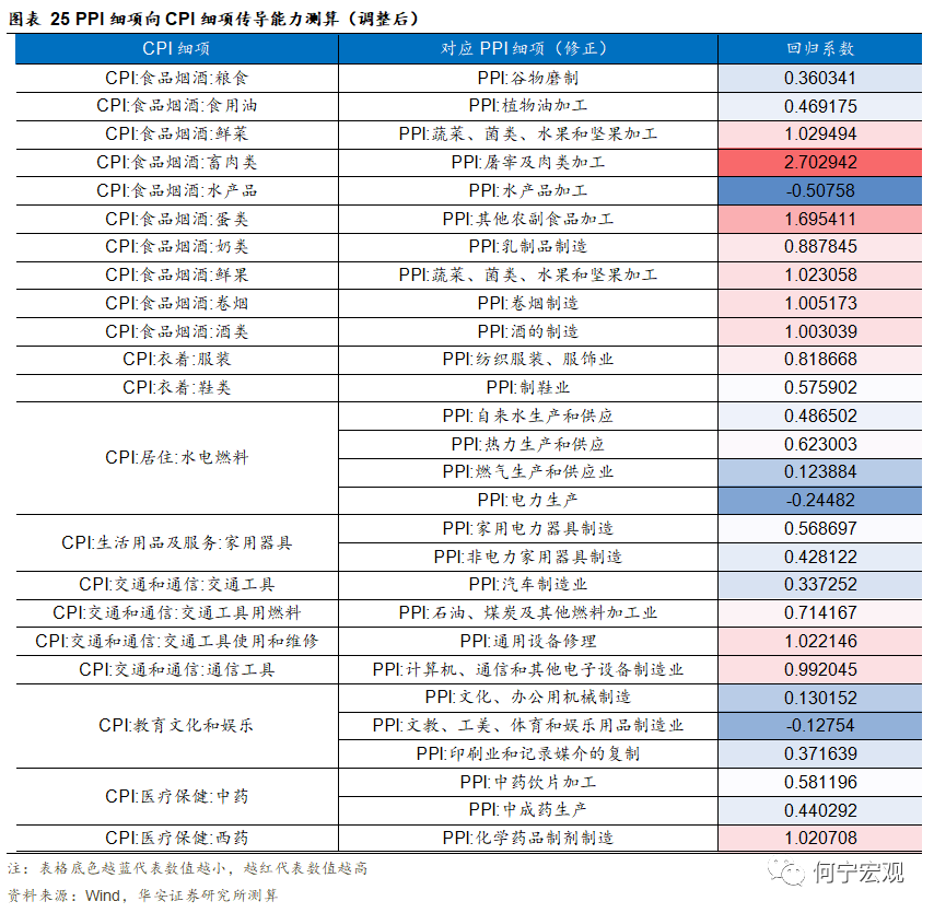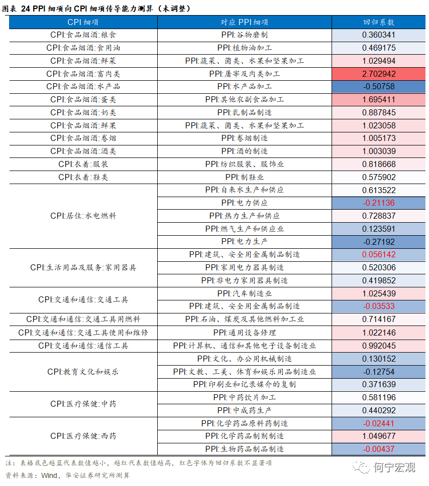 三、 三大维度看PPI向CPI传导,一对一细项传导效果存在差异