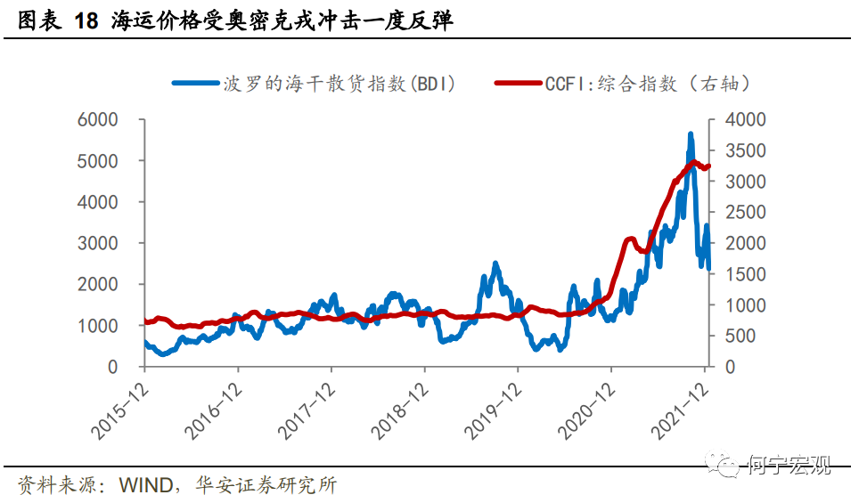 奥密克戎将从内陆运输、港口和海运冲击全球供应链。内陆运输方面,6月以来美国运输仓储人员严重短缺,职位空缺率6月以来持续高于非农平均,长途司机供给不足导致港口货物卸货效率低下、挤占港口仓储空间。根据美联社/ NORC公共事务研究中心的最新民意调查,36%美国人表示他们非常担心自己或家人感染新冠变种,较10月份的25%有显著上升,奥密克戎可能会进一步弱化司机就职意愿、打乱内陆运输的修复进程。港口方面,在收取集装箱超期滞留费后,美国港口堵塞有所缓解,洛杉矶锚地船只数近一个月来持续下滑,平均在港天数从28天下降至13天,但奥密克戎冲击叠加四季度节假日密集到来,美国居民抢购情绪会加剧货物短缺,明年一季度之前港口堵塞问题会继续恶化。海运方面,目前多国已针对南非及其周边数国实施跨国航班和旅行禁令,包括美国、英国、日本、加拿大、澳大利亚、韩国等。封锁趋严、港口拥堵致航运紧张局面延续。波罗的海干散货价格自11月17日以来反弹超过30%,我国出口集装箱运价指数CCFI居高不下,明年制造业关键零部件短缺的窘境可能再度上演。