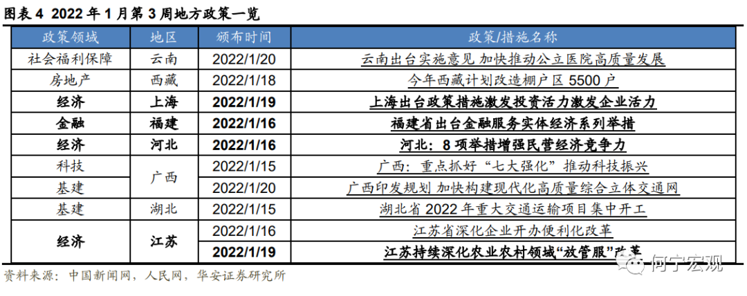 2022年第3周(1月15日-1月21日)地方政府颁布的政策参见如下表格。摘录重点内容如下: