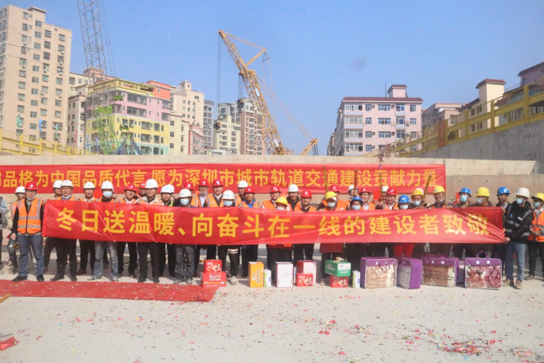 封顶仪式后,项目开展冬日送温暖慰问活动,慰问一线建设工友,为广大职工带来满满的暖意,向奋斗在一线的建设者致敬。
