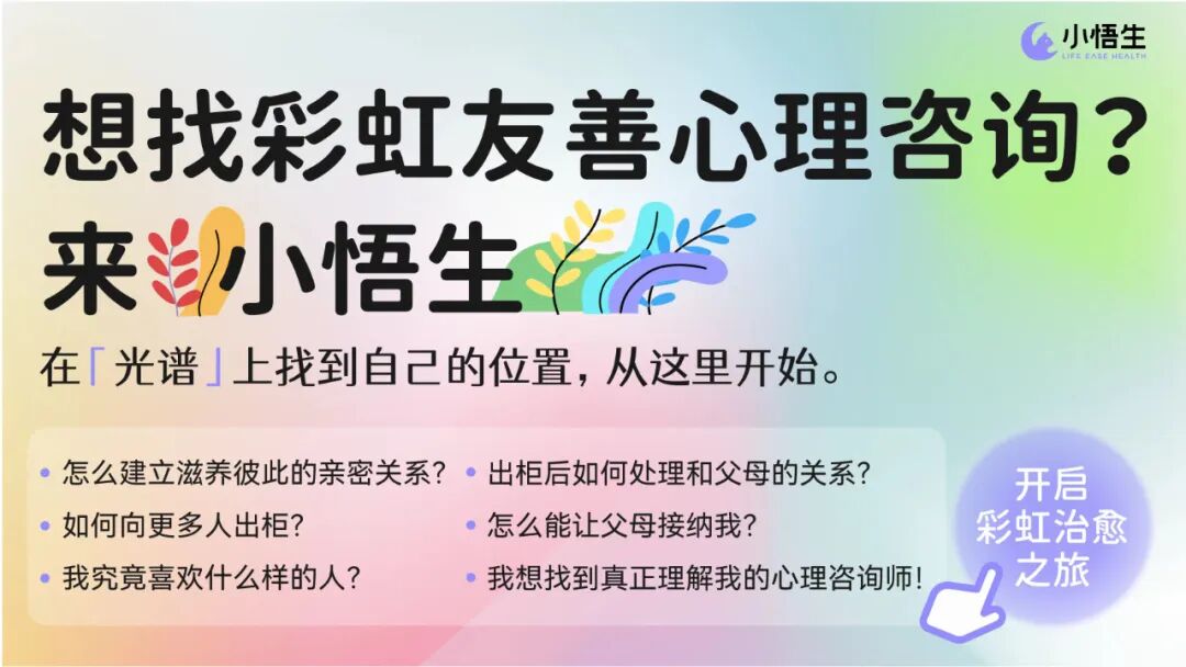 因此,咨询师除了要理解同志来访者出柜的需求以外,还需要理解其家庭成员对此事的感受,以帮助化解家庭危机。