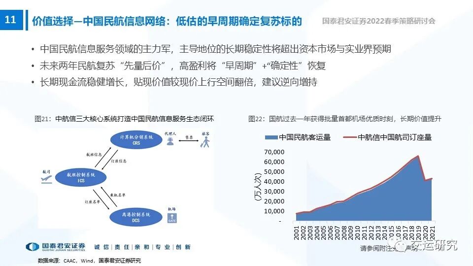 短期,至暗时刻,业绩显著承压。中期,新冠防治体系逐步增强,持续提升未来两年复苏确定性。长期,前景乐观。疫情未改长期需求,且空域供给瓶颈持续,叠加票价市场化,长期盈利将超预期上行。建议关注逆向时机。维持中国国航、中国民航信息网络等“增持”评级。