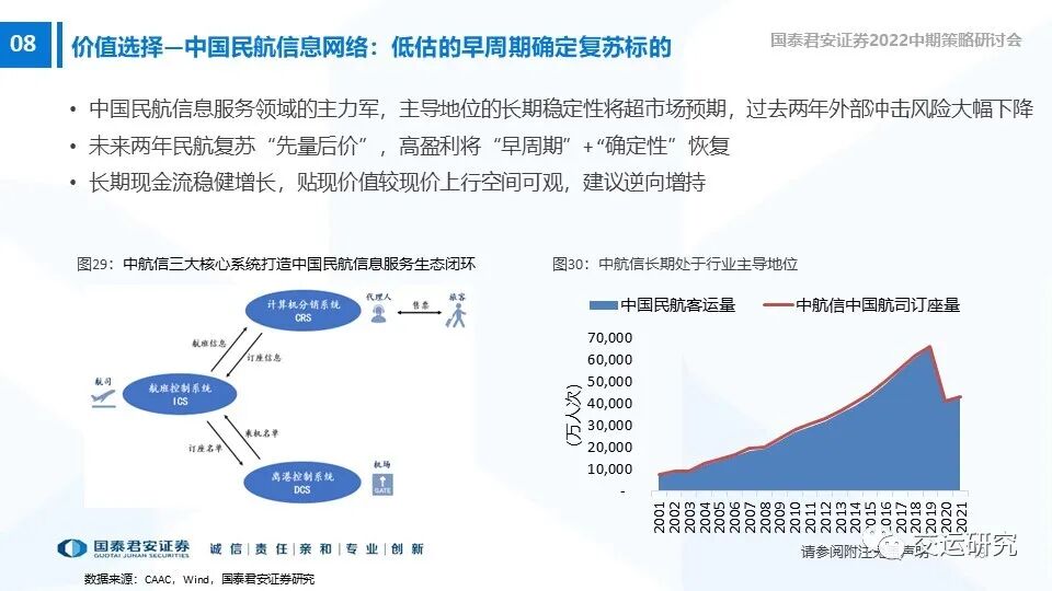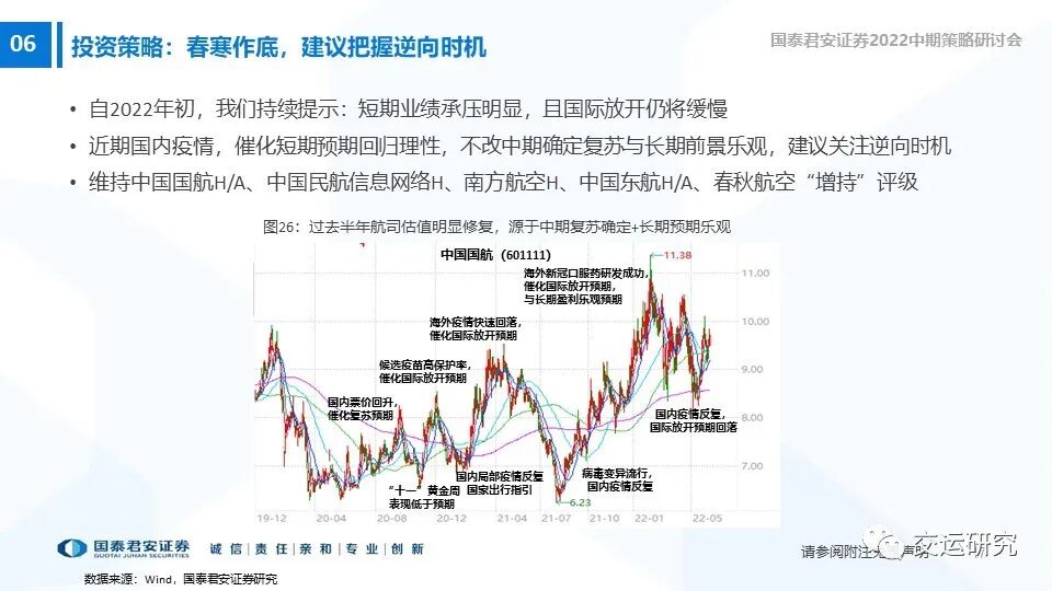 短期春寒作底,预期回落。中期复苏确定,长期前景乐观,是极少数长逻辑将超预期的周期股。建议关注逆向时机。增持评级:中国国航、中国民航信息网络等。