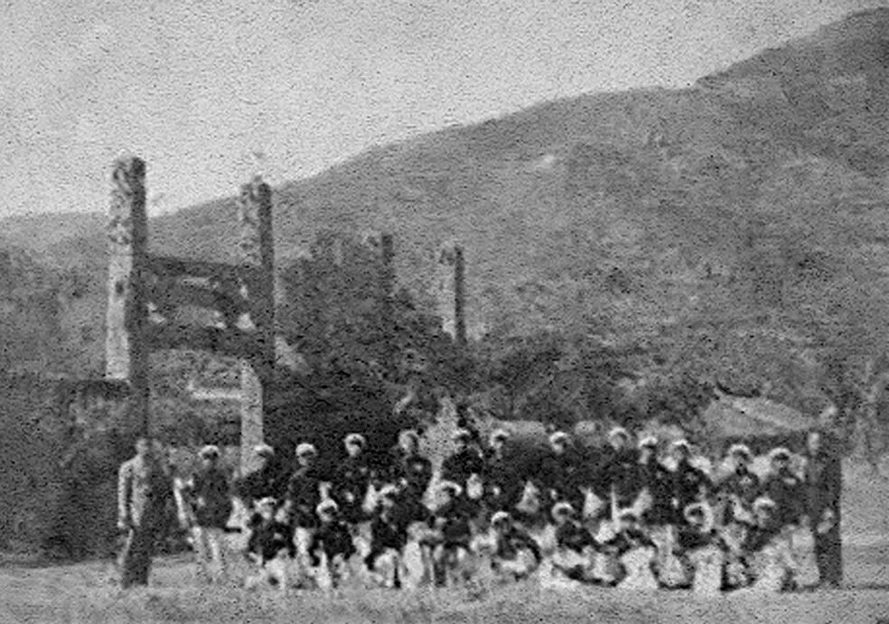 上世纪40年代平阳中学学生合影,其背景为“棂星门”和“道冠古今”牌坊。