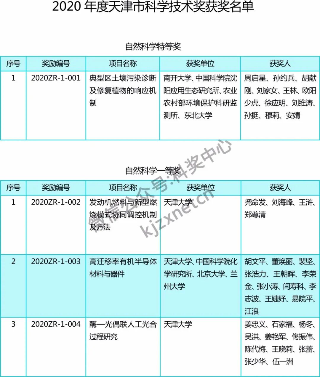 2020年天津市科技奖决定正式发布:特等奖7项,一等奖30项