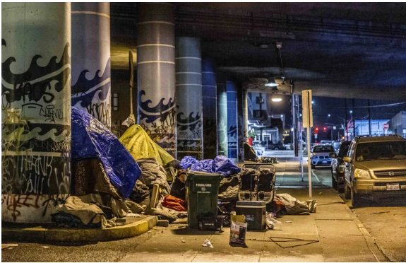 (来自西雅图时报截图,唐人街的流浪汉和问题严重)