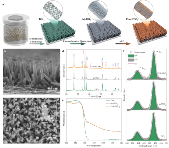 通过水热、电化学还原和原子层沉积的方法制备了单原子Pt锚定的缺陷态TiO
